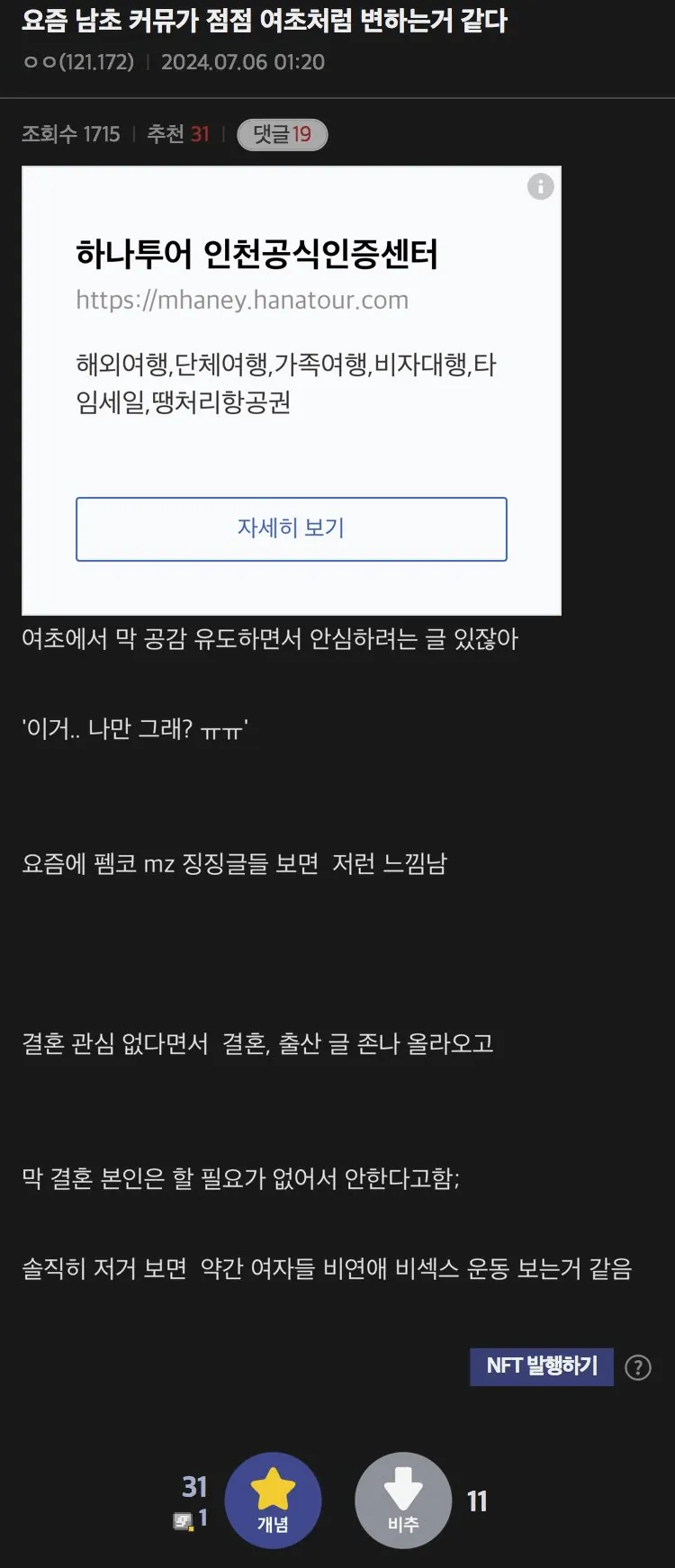 남초 커뮤도 여성 진출이 많아지면서 분위기가 ...