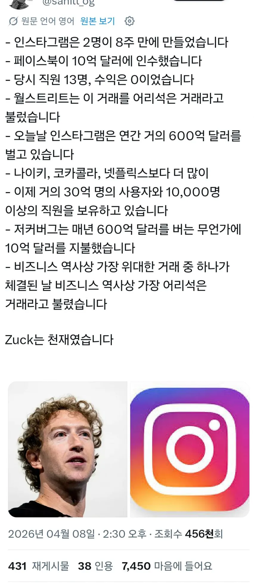 10억달러로 인스타그램을 거머쥔 그 인물