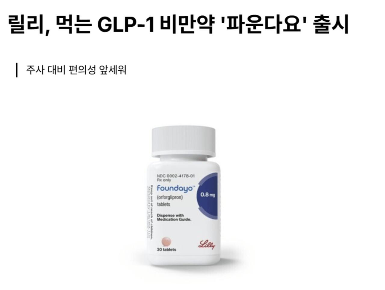 일라이 릴리가 마운자로의 경구약 형태를 내놨대파운다요(Foundayo)라는 약품인데 4월 1일에 FDA 승인을 받은 뒤 바로 판매 개시최대 용량 기준 72주 사용 시 평균 12.4kg 체중감소 효과출처 https://www.leadeconomy.co.kr/news/articleView.html?idxno=7074비만이 이제 의학적으로 해결되는 느낌이네