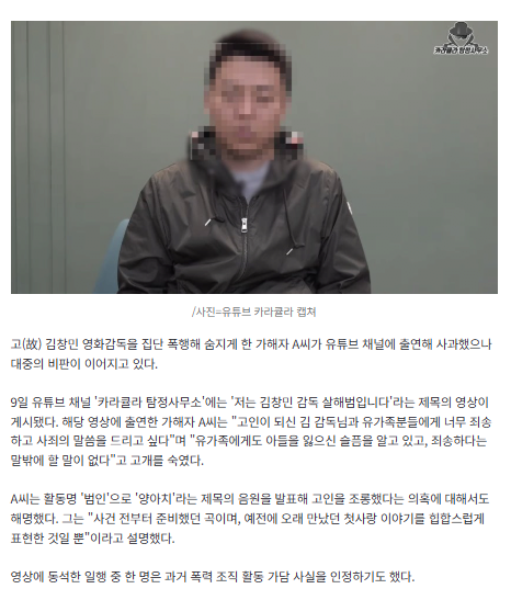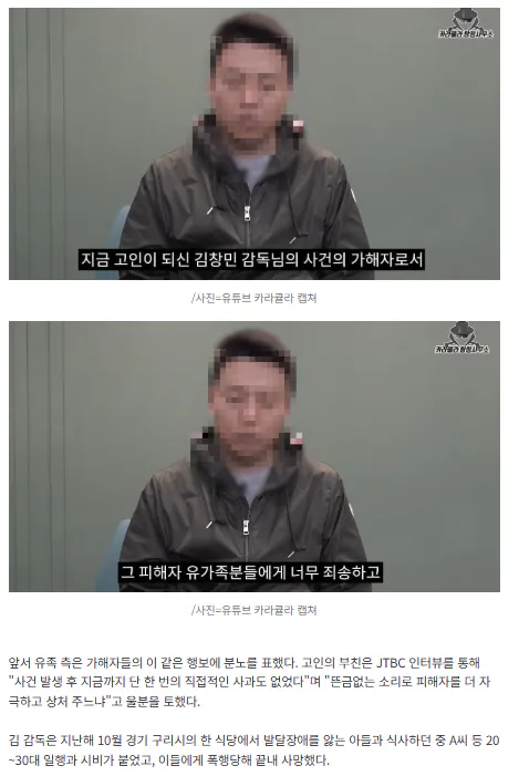 카라큘라 유튜브 채널에 고인 김창민 감독 사건의 가해자가 출연하여 공개 사과를 했다