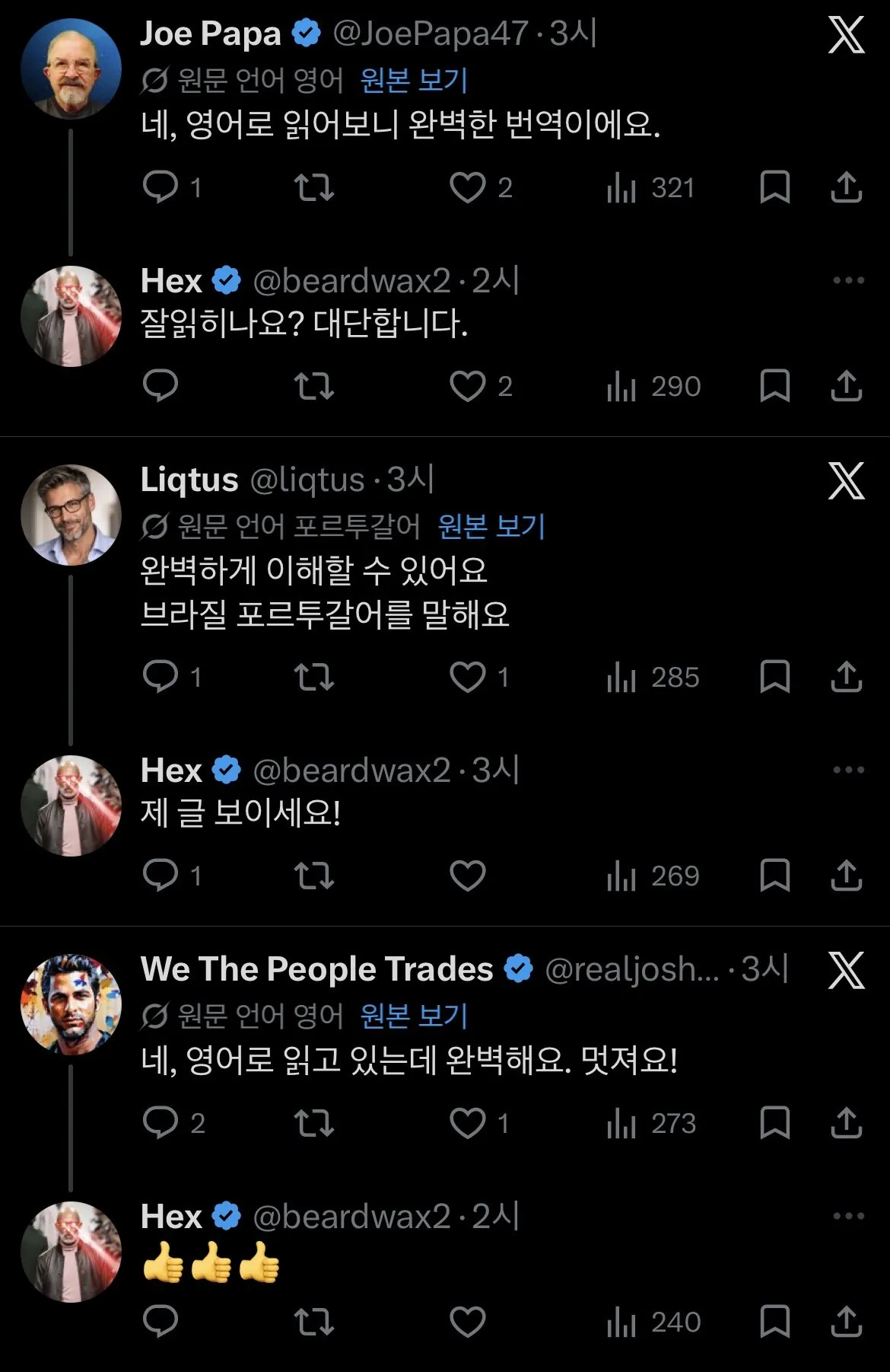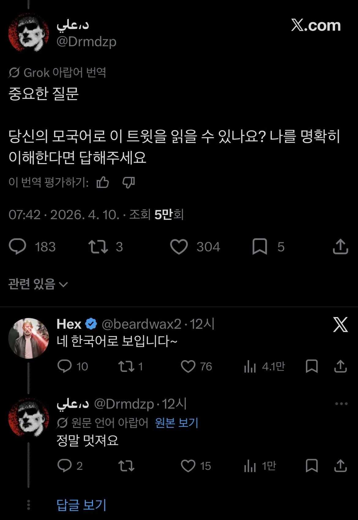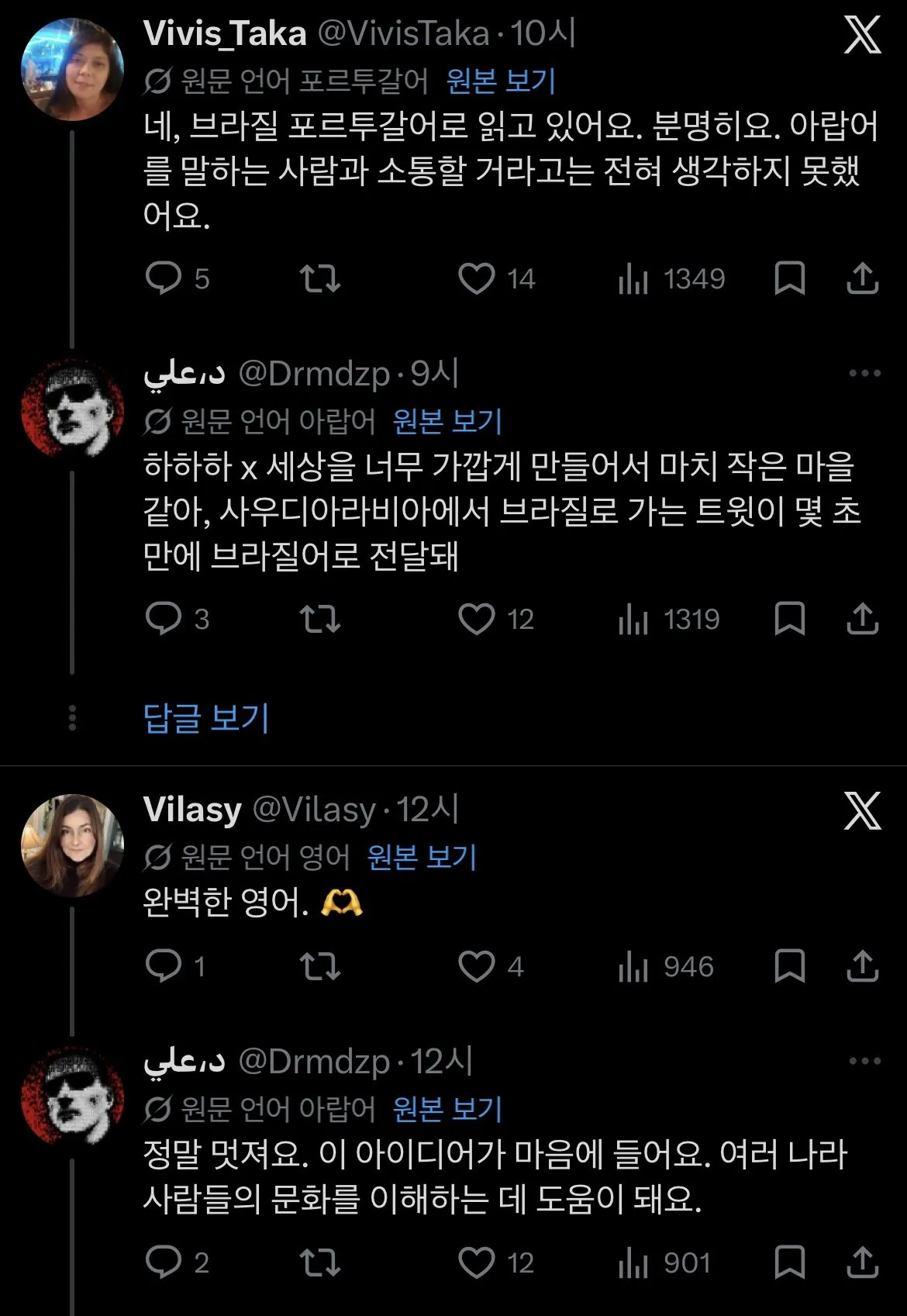 이전엔 번역 버튼을 눌러야 했지만, 이제는 그냥 자동으로 번역되는 거라고.인공지능 기술 덕분에 번역 정확도도 거의 완벽 수준이라고 하네.머스크가 요즘 한국글들을 자꾸 인용해서 뭐하는 건가 싶었는데, 이 기능 때문이었구나..(AI로 만든 합성 이미지로 글을 마무리)