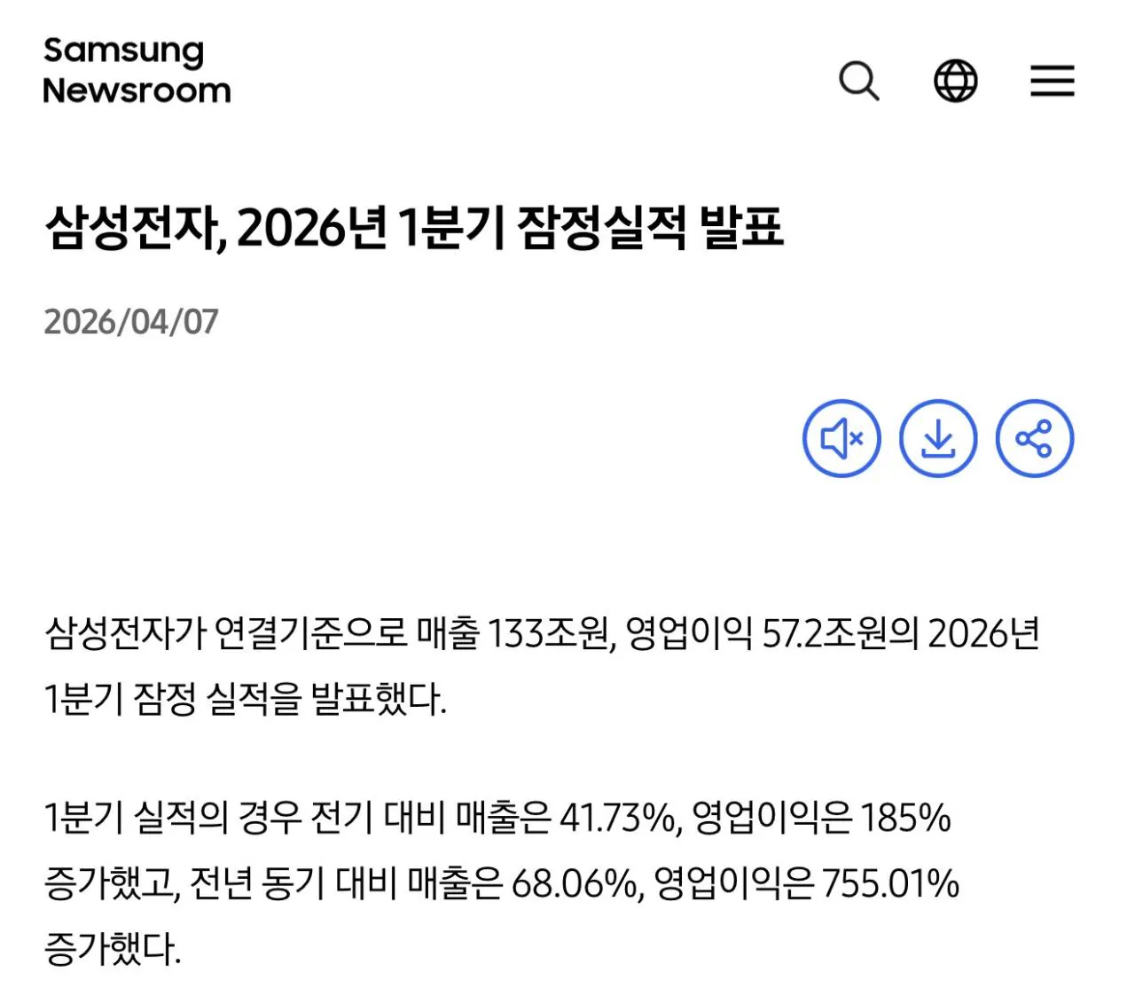 삼성 반도체부문(DS)의 1분기 영업이익이 50조원 정도라고