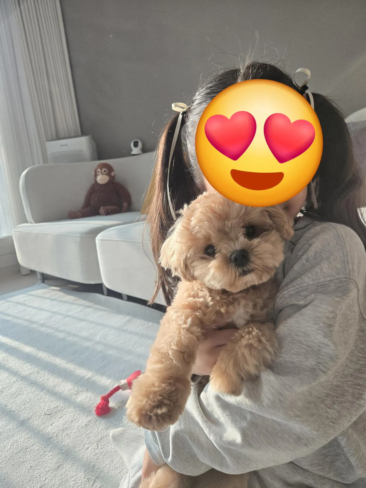 집에 데려온 지 7개월된 말티푸네요우리 강아지의 가장 큰 특징은 정신없을 정도로 활발하다는 것안아줘도 계속 움직이려고만 하고 멈추지를 않아요어린 아이들 보면 자꾸만 짖는데 아마 가족을 지키려는 본능 같음그나마 다행인 건 털 빠짐이 예상보다 적다는 거기질이 참 순하고 착한 점도 있어서 말티푸라는 견종이 진짜 좋네요ㅋㅋ
