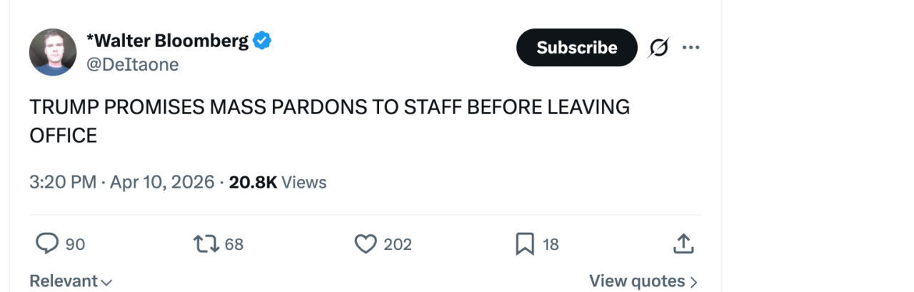 자신의 참모들과 보좌진이 퇴임 후 법적 보복의 대상이 될까봐 걱정되자, 트럼프는 퇴임 전에 이들을 광범위하게 사면해줄 생각이라고 드러냈다.이를 선제적 사면이라고 하는데, 아직 공식적으로 기소되지 않은 혐의도 나중에 고소될 만한 모든 것들을 미리 용서하는 방식이다.지지자들은 충성파들을 보호하는 정당한 처사라고 생각하지만, 비판 진영에서는 이게 법의 지배를 훼손하고 사법 정의에서 도망치려는 꼼수라고 지적하고 있다.