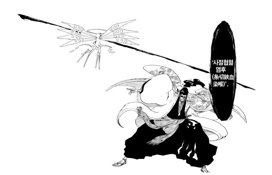 제1단 주저자분합(躊躇疵分合) → 쿄라쿠 슌스이의 몸에 난 상처들을 상대에게도 동일하게 입힘. 단, 이 상처로는 죽이는 게 불가능