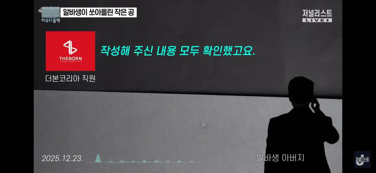 지난해 12월 알바생 부친과 더본코리 본사가 나눈 대화가 알려지게 됐습니다.