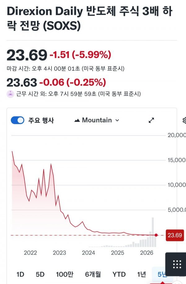 반도체 시장이 약세 중인데 3배 상품으로 30억을 풀배팅했다는 얘기가 있네 ㄷㄷ
