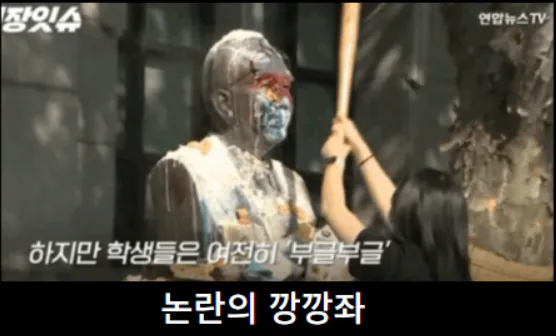 3. 성신여대 재단 설립자 친일파 몰이하며 동상에 테이프 붙이고 락카칠하기