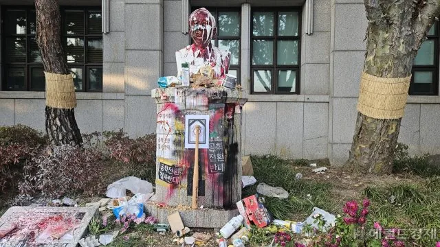2. 여성교육에 헌신한 조용각 박사 동상에 락카, 밀가루, 계란 테러