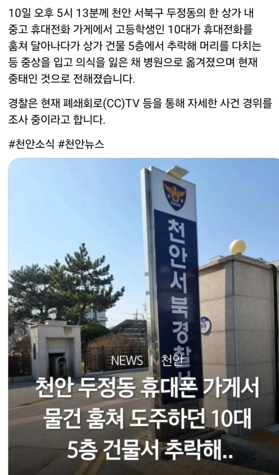 5층 건물서 떨어진 10대, 현재 중태 상황