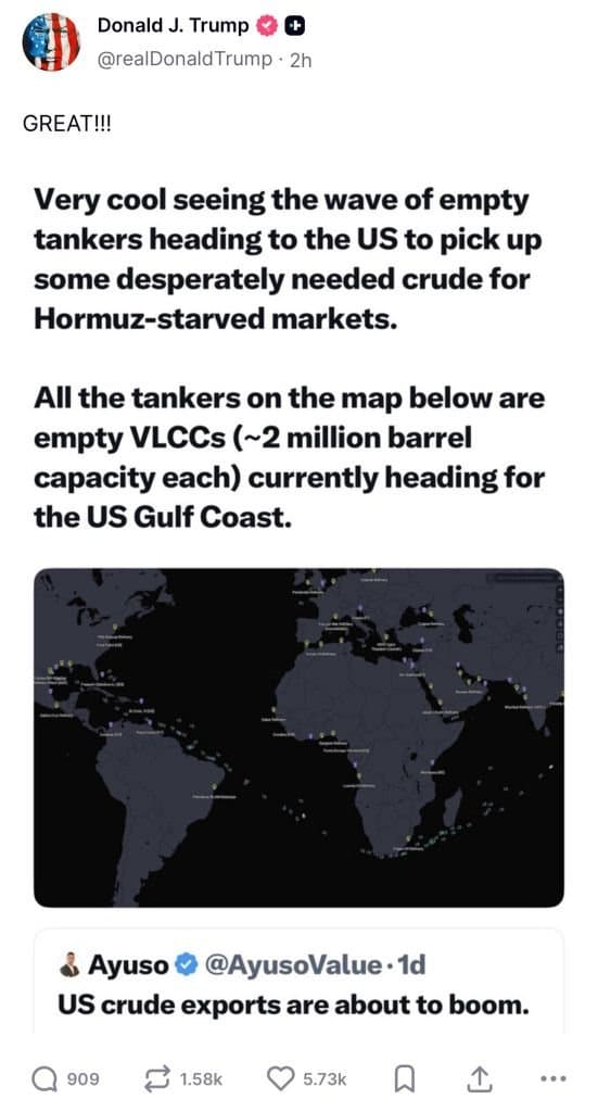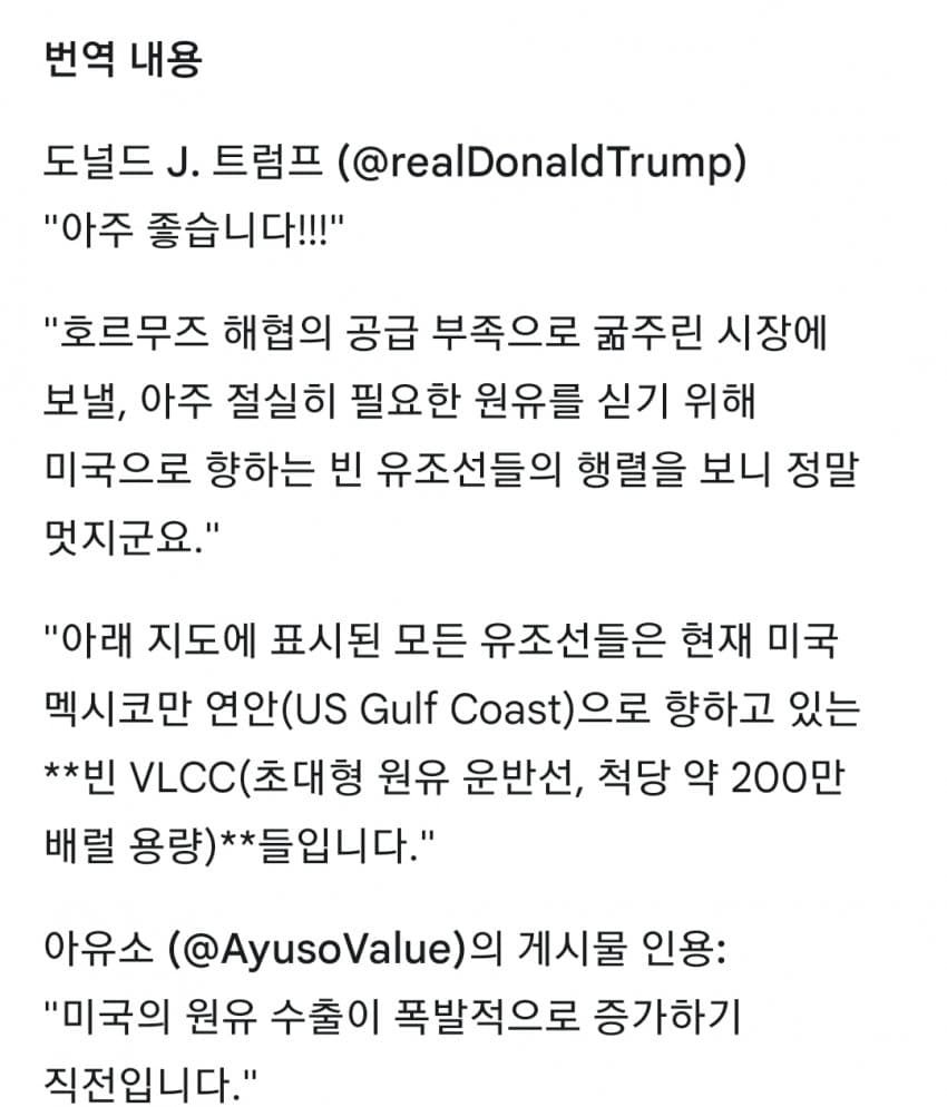 미국으로 몰려드는 유조선 행렬을 보면서 기분이 좋다고 언급했다.