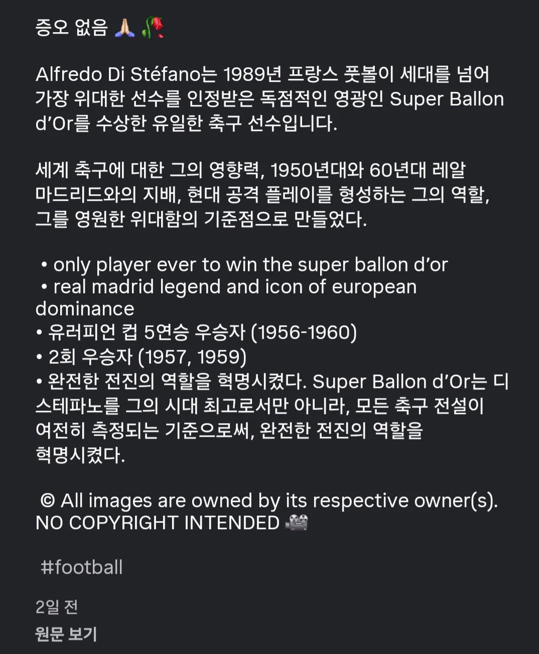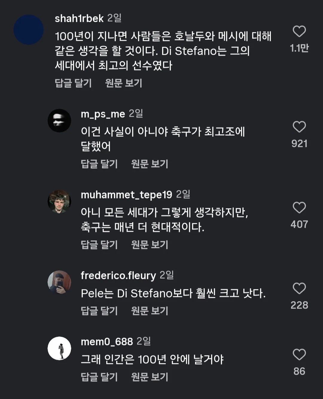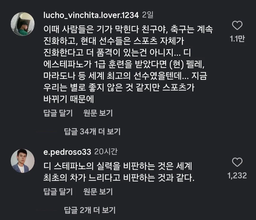 실은 옛날 축구계의 거성 디스테파노라는 선수가 있었는데, 그의 플레이 영상을 본 요즘 세대가 정말 깜짝 놀랐다고