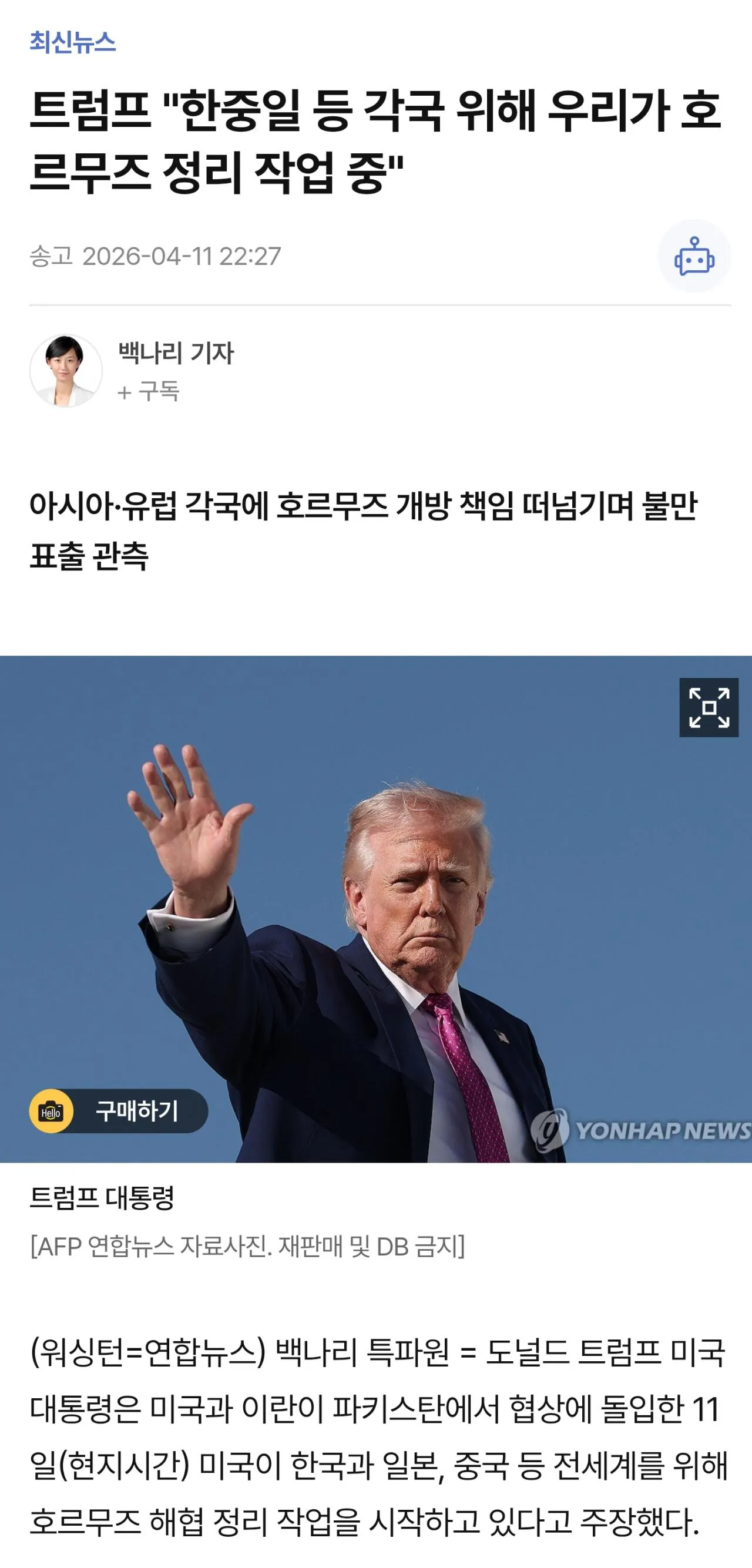 트럼프가 한중일 깠다는데