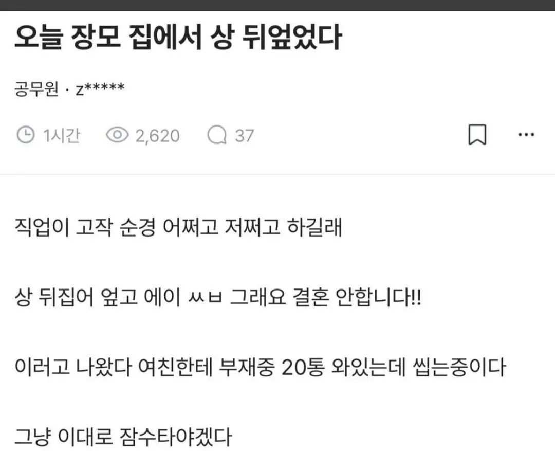 장모 댁에서 밥상을 날려버렸다