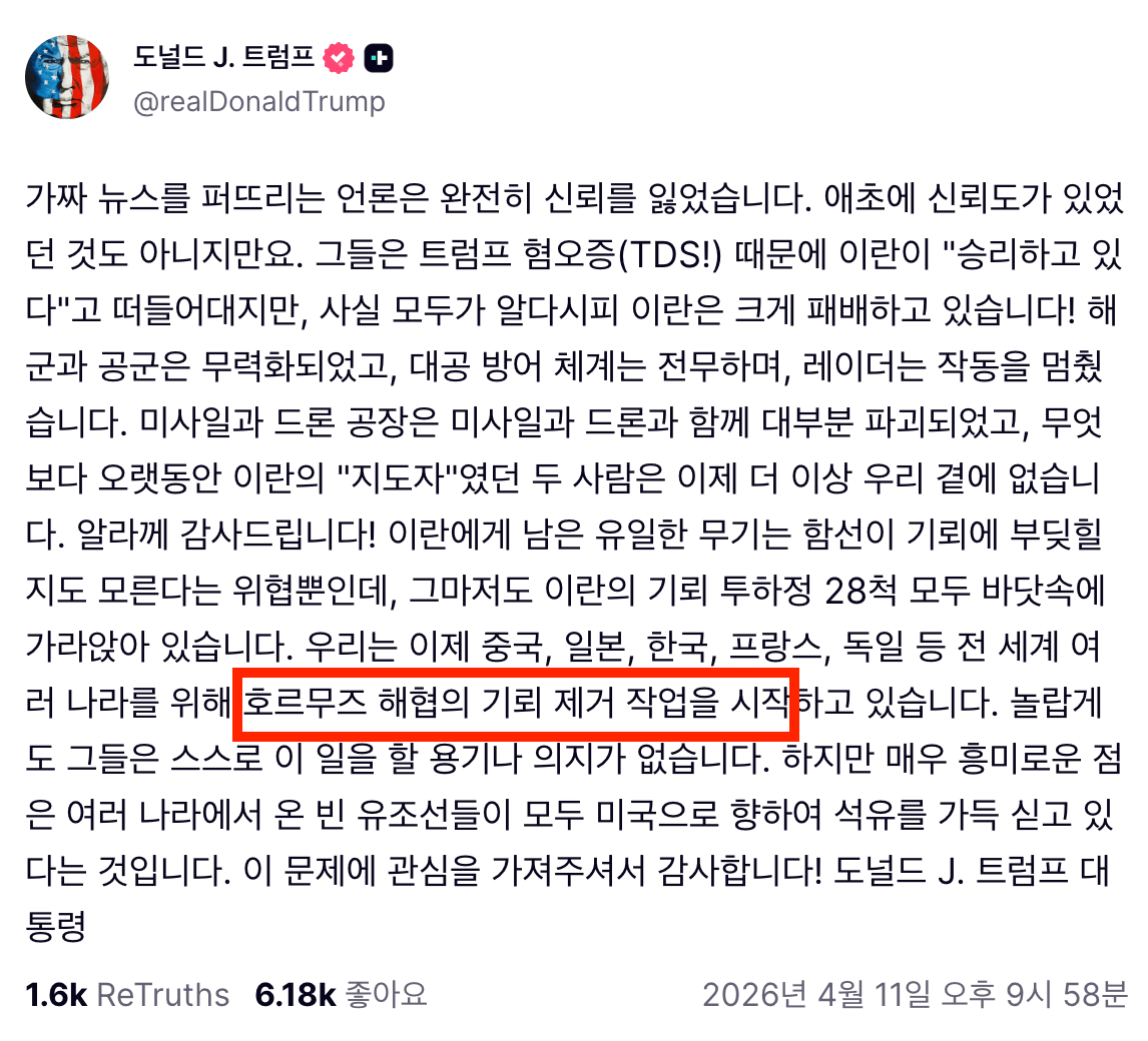 트럼프 대통령이 호르무즈 해협 기뢰 제거 작업에 착수한다고 소셜 미디어에 공개했다.이어 악시오스가 미 군함이 호르무즈 해협을 통과했다고 보도했다.이란 정부는 국영TV와 통신사 타스를 통해 미국의 발표가 거짓이며 경고 후 미군함을 돌려보냈다고 반박했다.