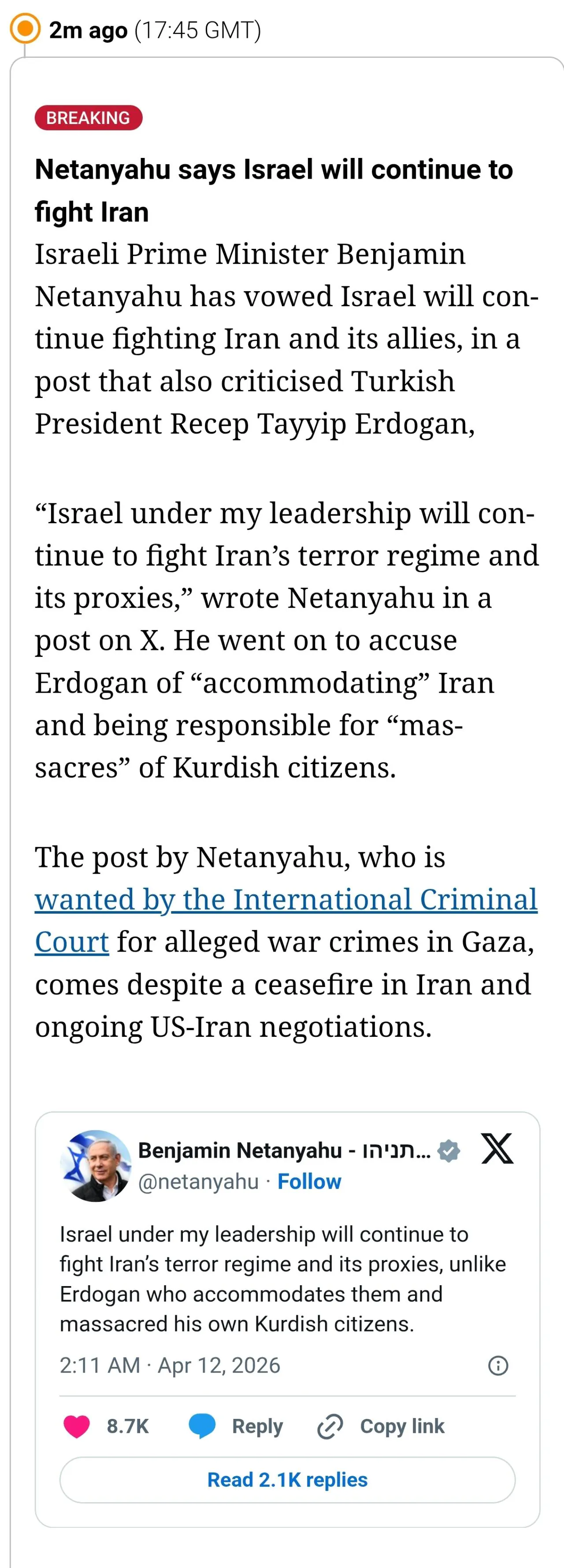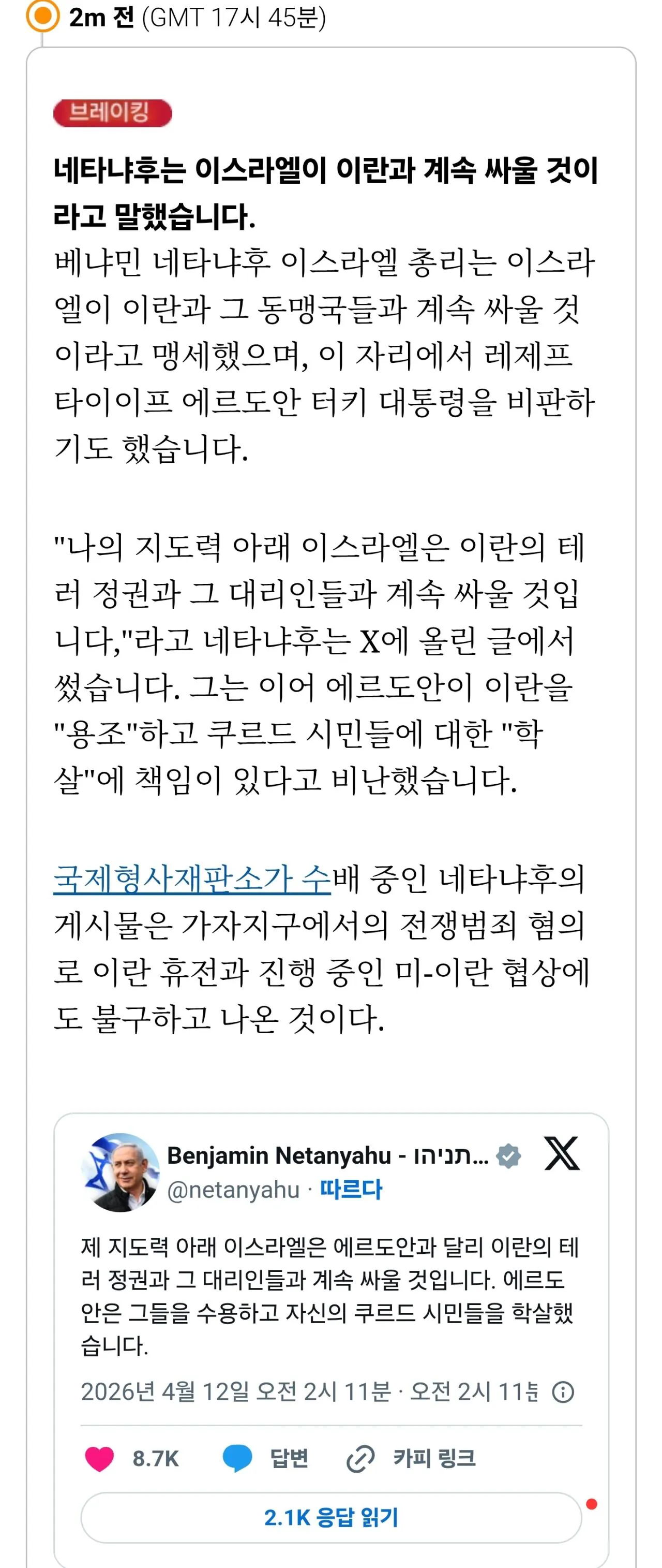 이란과는 계속 싸울 수밖에 없다는 네타냐후