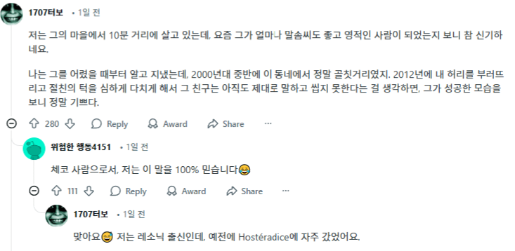 프로하츠카 한테 맞아서 자긴 허리가 부러졌고 친구는 아직도 제대로 못씹는다는 댓글