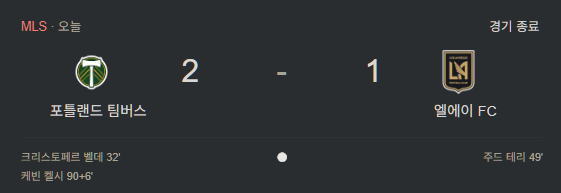 손흥민 결장한 LAFC, 극장골로 패배