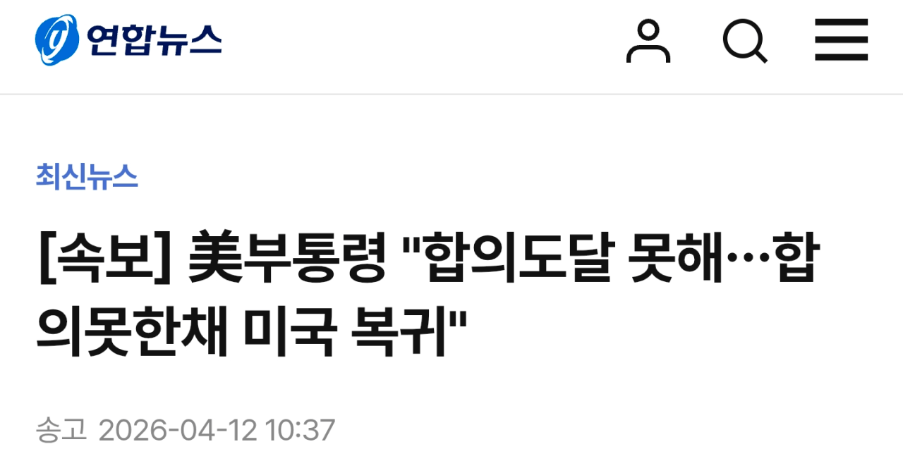 [속보] 美부통령 "합의도달 못해…합의못한채 미국 복귀"