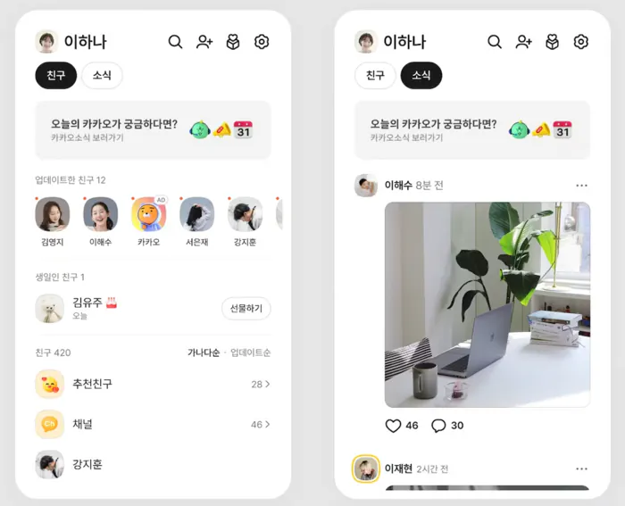 어느 순간부터 친구 탭이 자동으로 소식 탭으로 바뀌어서 뜬다고 함