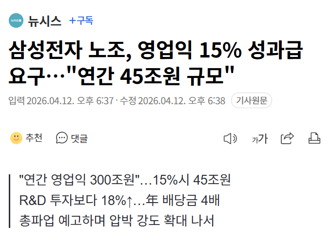 삼성 노조 또 터졌네 45조 성과금?