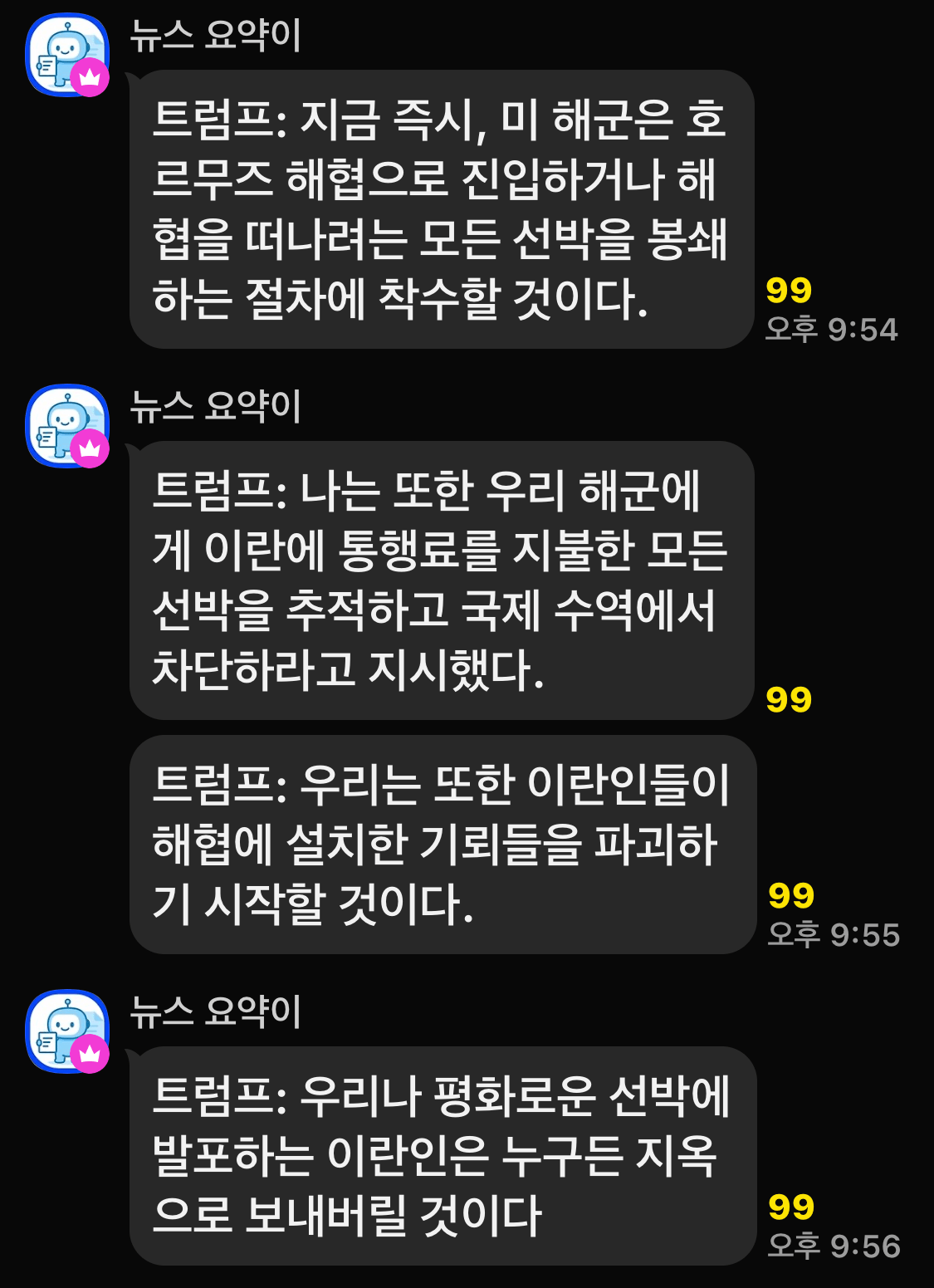 [속보] 트럼프 "이란 통행료 지불 선박 찾아...