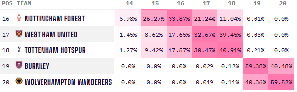 수치로만 봐도 토트넘 강등 가능성이 약 40% 수준이라고 하더라