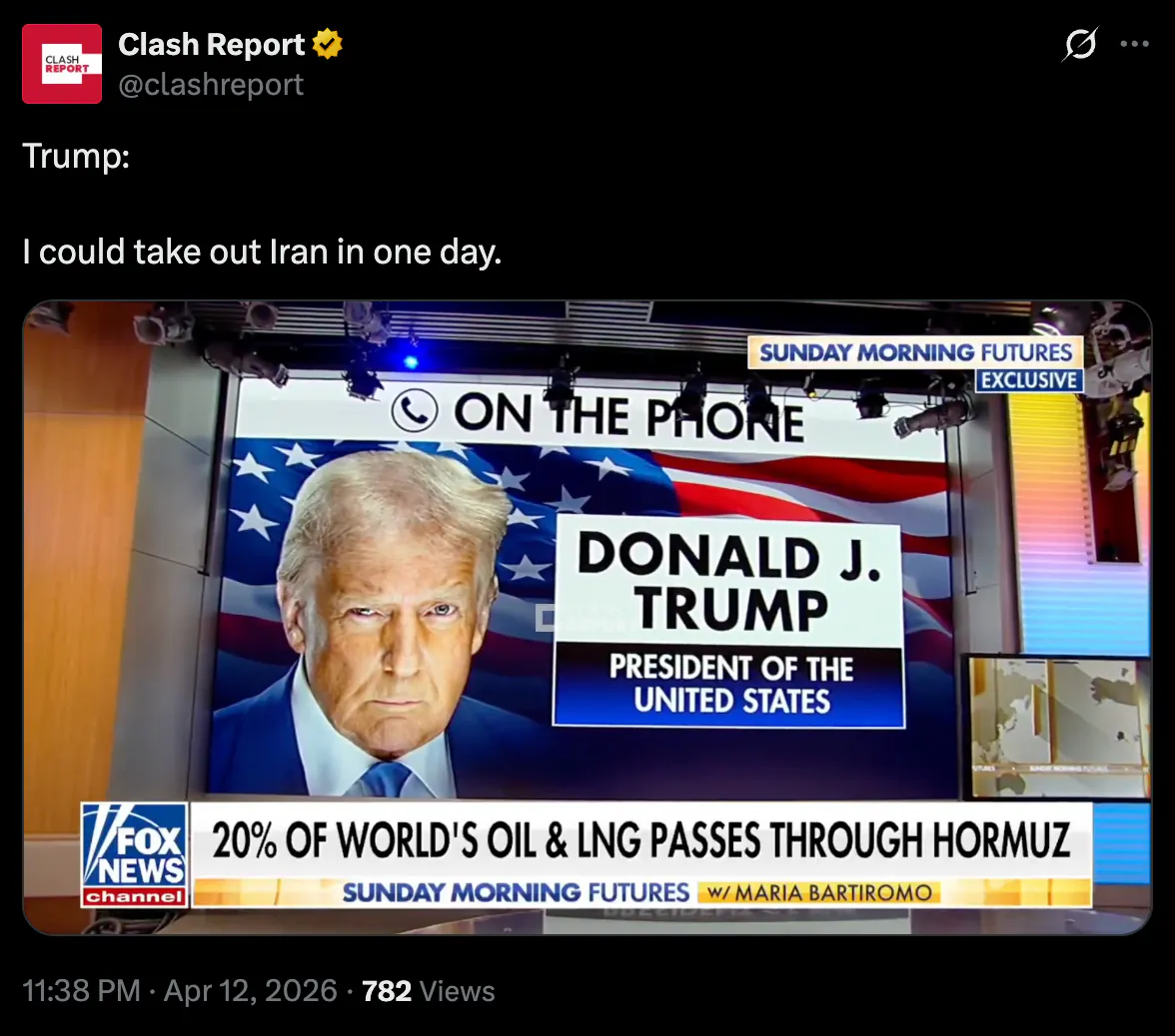 이란이 엄청난 피해를 입었다고 봅니다. 제 능력으로는 이란을 하루 안에 무너뜨릴 수 있어요. 구체적으로 말하면, 이란의 모든 에너지 인프라와 발전소를 단 한 시간 만에 완전히 제거하는 게 가능합니다. 정말 거대한 일이죠.다만 저는 그렇게 하고 싶지 않습니다. 왜냐하면 그렇게 한다면 재건하는 데만 10년이 필요할 거고, 실질적으로는 다시는 복구가 안 될 거거든요.