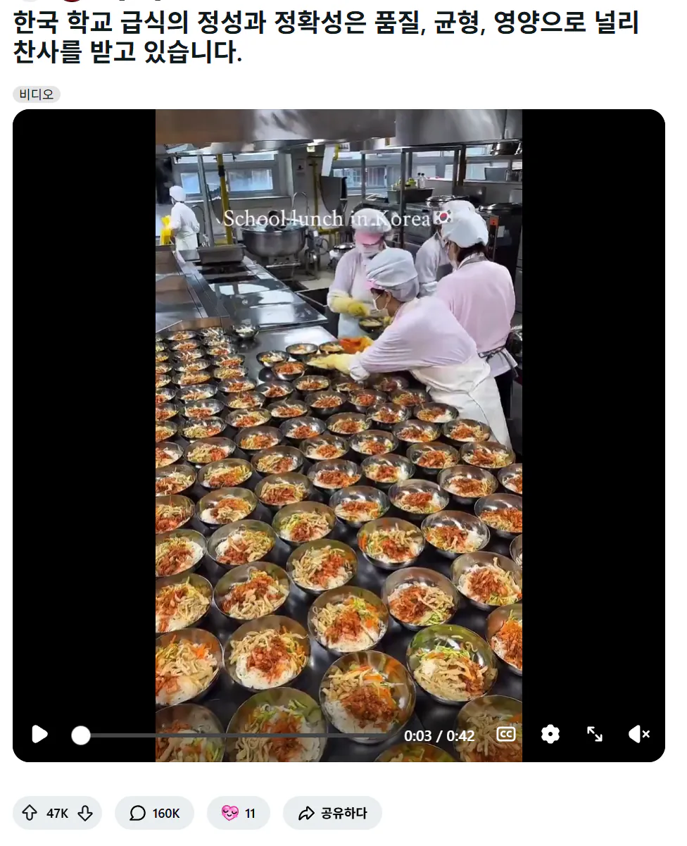 레딧에서 추천 4만7천개 받은 급식 준비과정 영상 댓글 반응ㅋㅋㅋㅋㅋㅋㅋㅋ