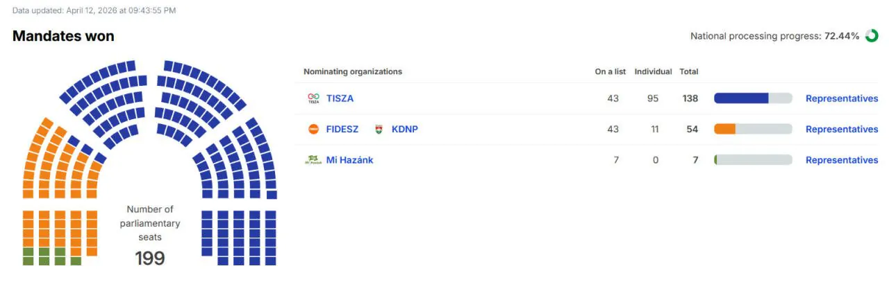 개표가 아직 끝나지 않았지만 헝가리는 의원내각제인만큼 이미 정권교체는 확실하고