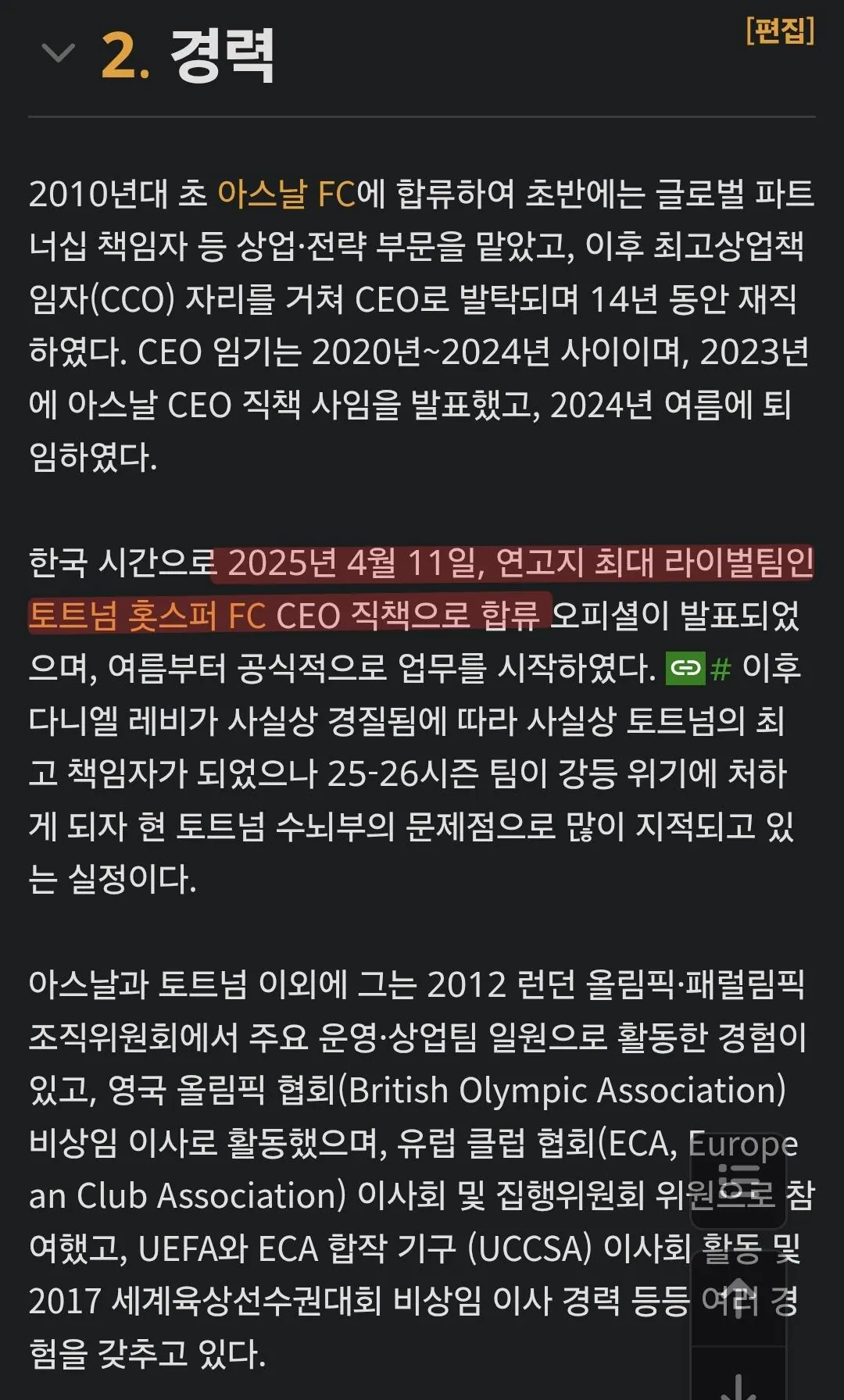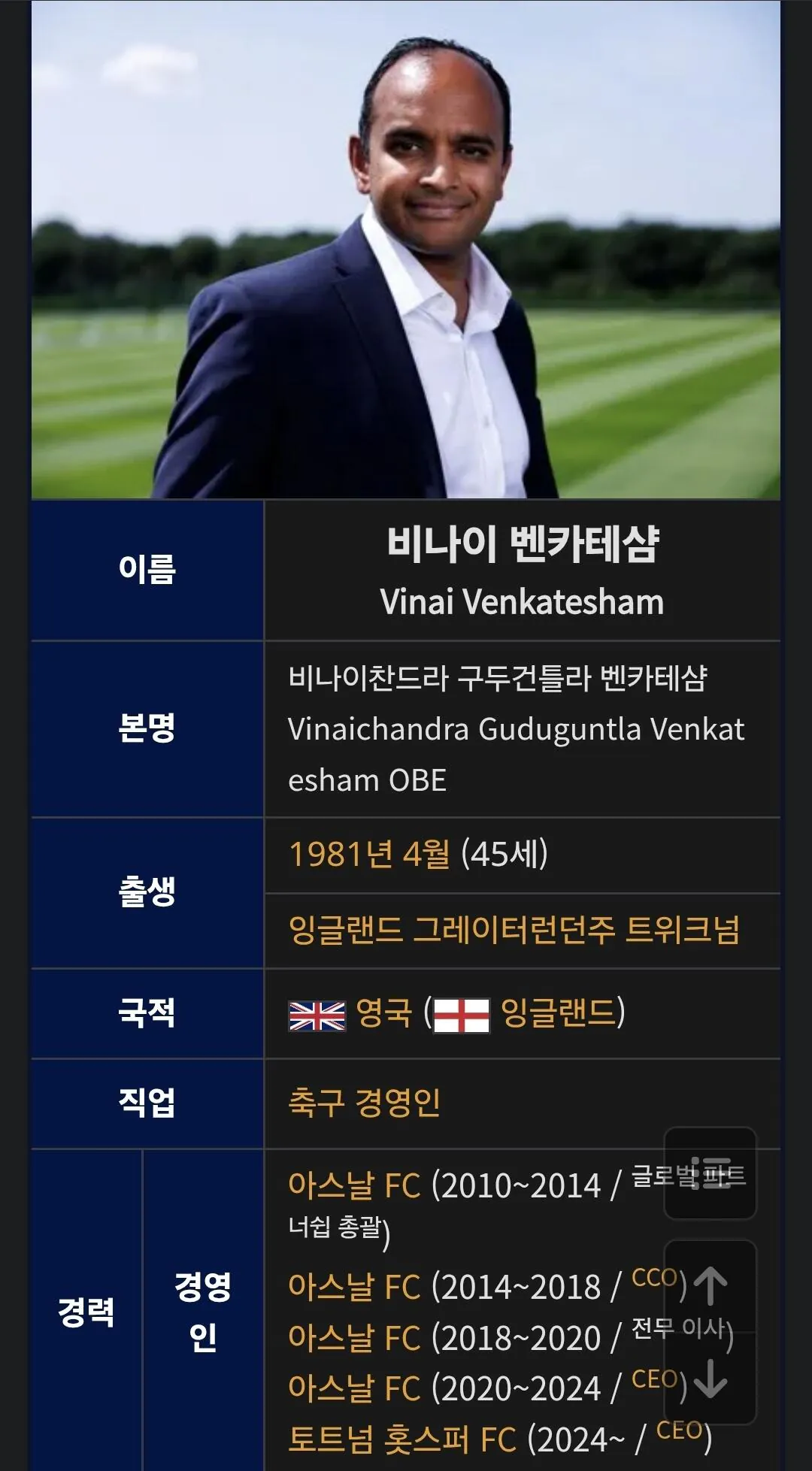 비나이 벤카테샴이 아스날에서 토트넘의 CEO로 옮겼는데, 그 이후로 토트넘 시즌이 산산이 났대.아스날이 의도적으로 독을 푼 거 아니냐는 농담도 심심찮게 나올 정도다.