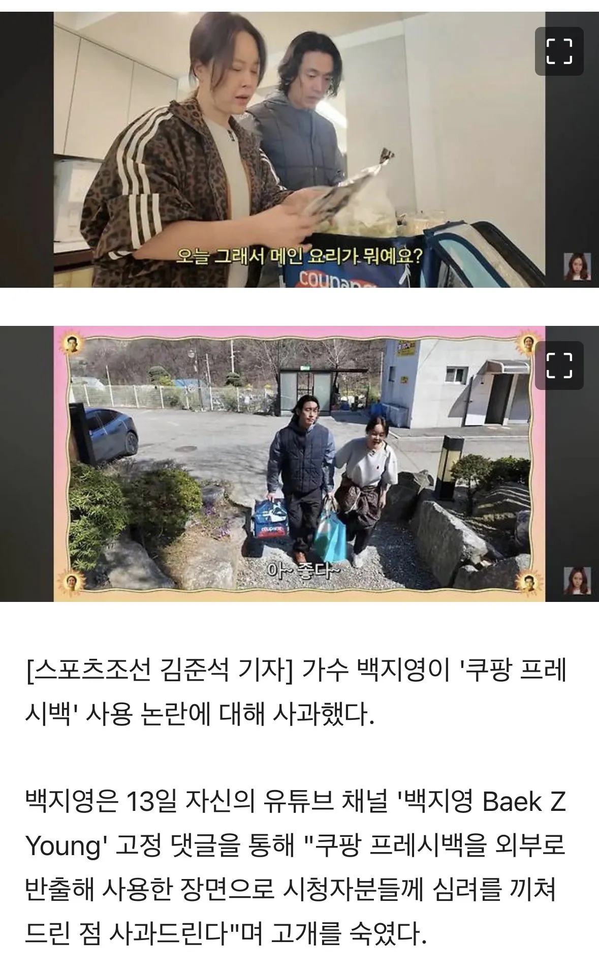 백지영, '쿠팡 프레시백' 들고 캠핑 갔다 '뭇매'... "불편함 공감" 즉시 삭제