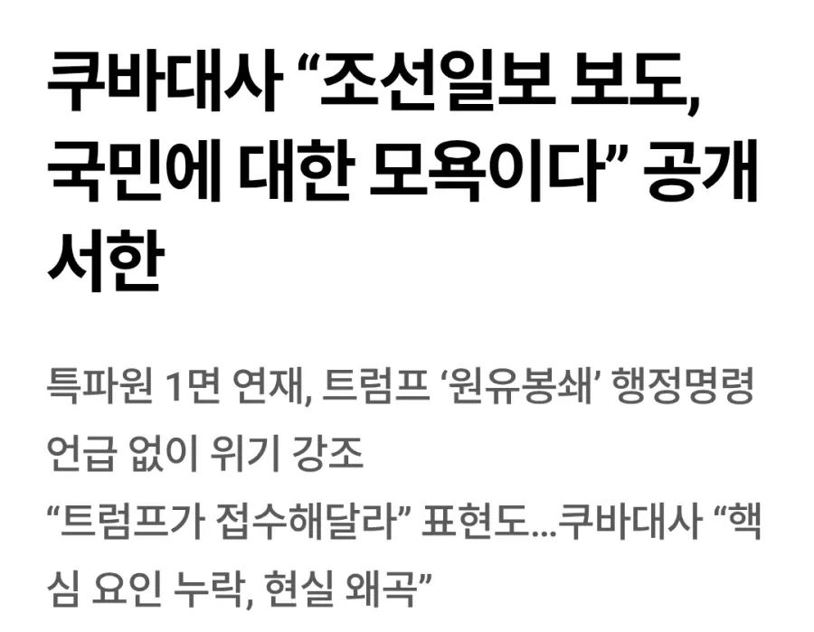 조선일보의 보도에 대해 쿠바 정부가 공식 서한으로 정정을 요청했는데