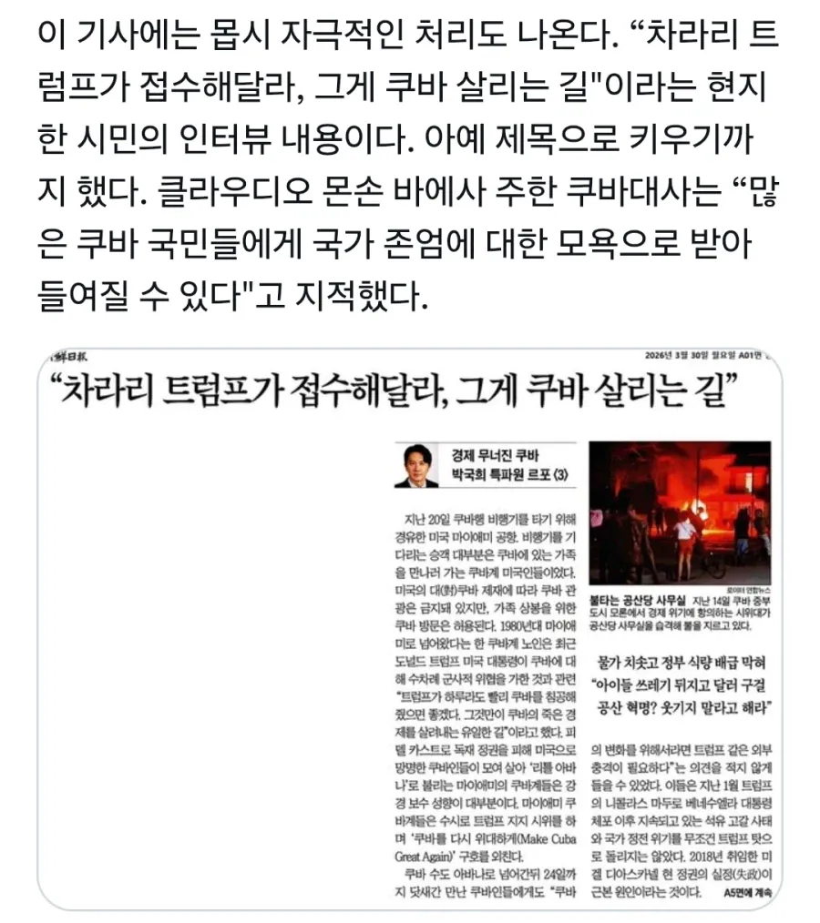 쿠바가 요청한 정정을 조선일보가 씹었다고하네