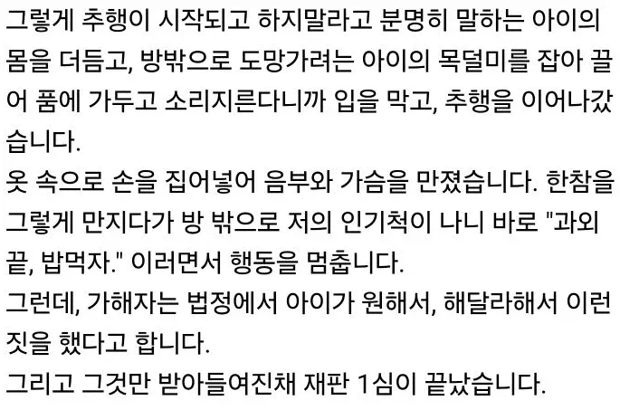 그런데 애가 먼저 유혹했다고 변명결과 집유