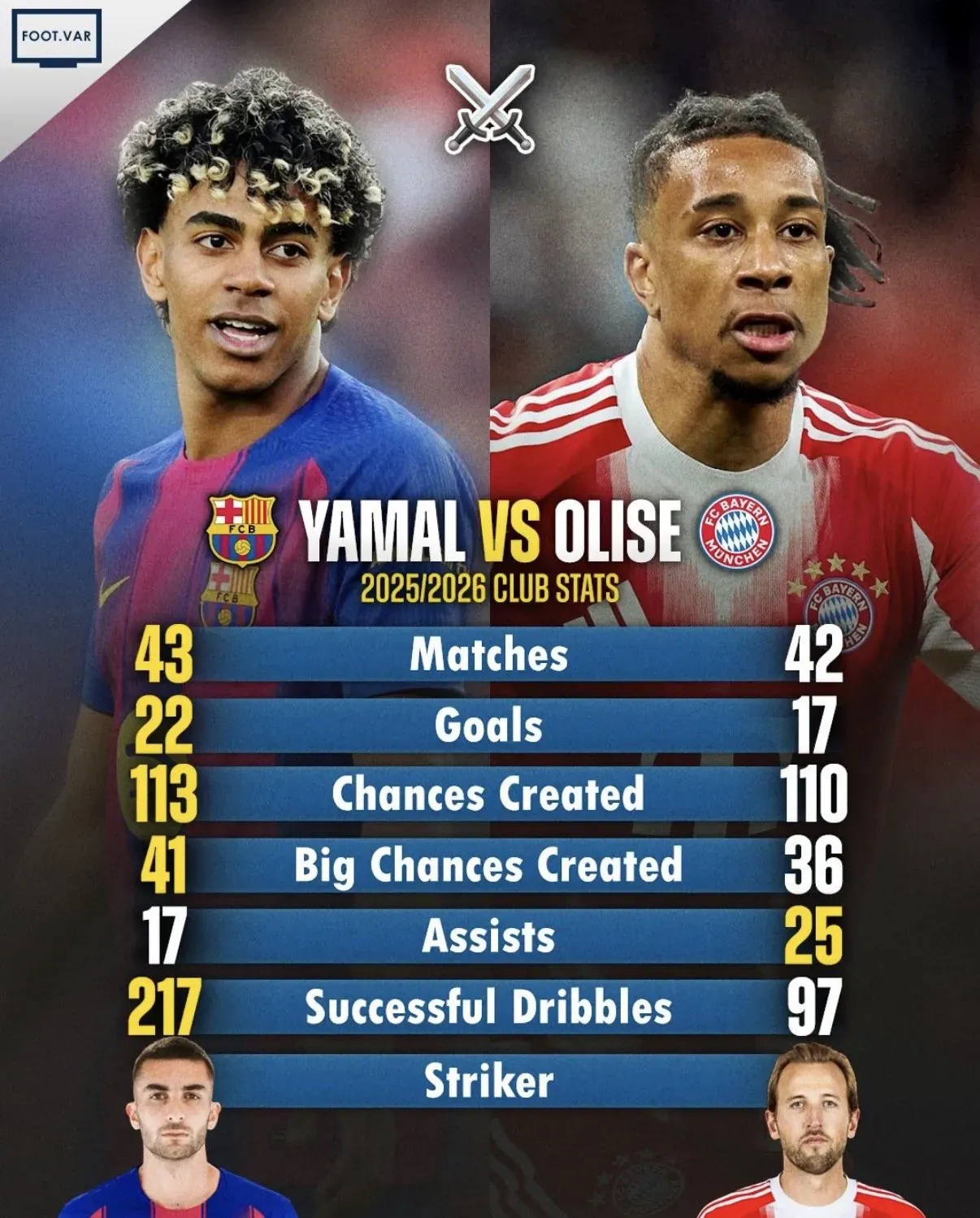 올 시즌 야말은 43경기 출장에서 22골을 기록했는데, 올리세는 42경기 17골로 마무리했어요.