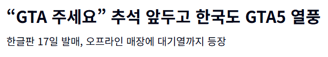 GTA 5 발매 당일 날 국내 게임샵 현장콘솔게임의 불모지 한국에서 10만장 판매 달성KBS에서 GTA5를 다룰 정도의 파급력 ㄷㄷ