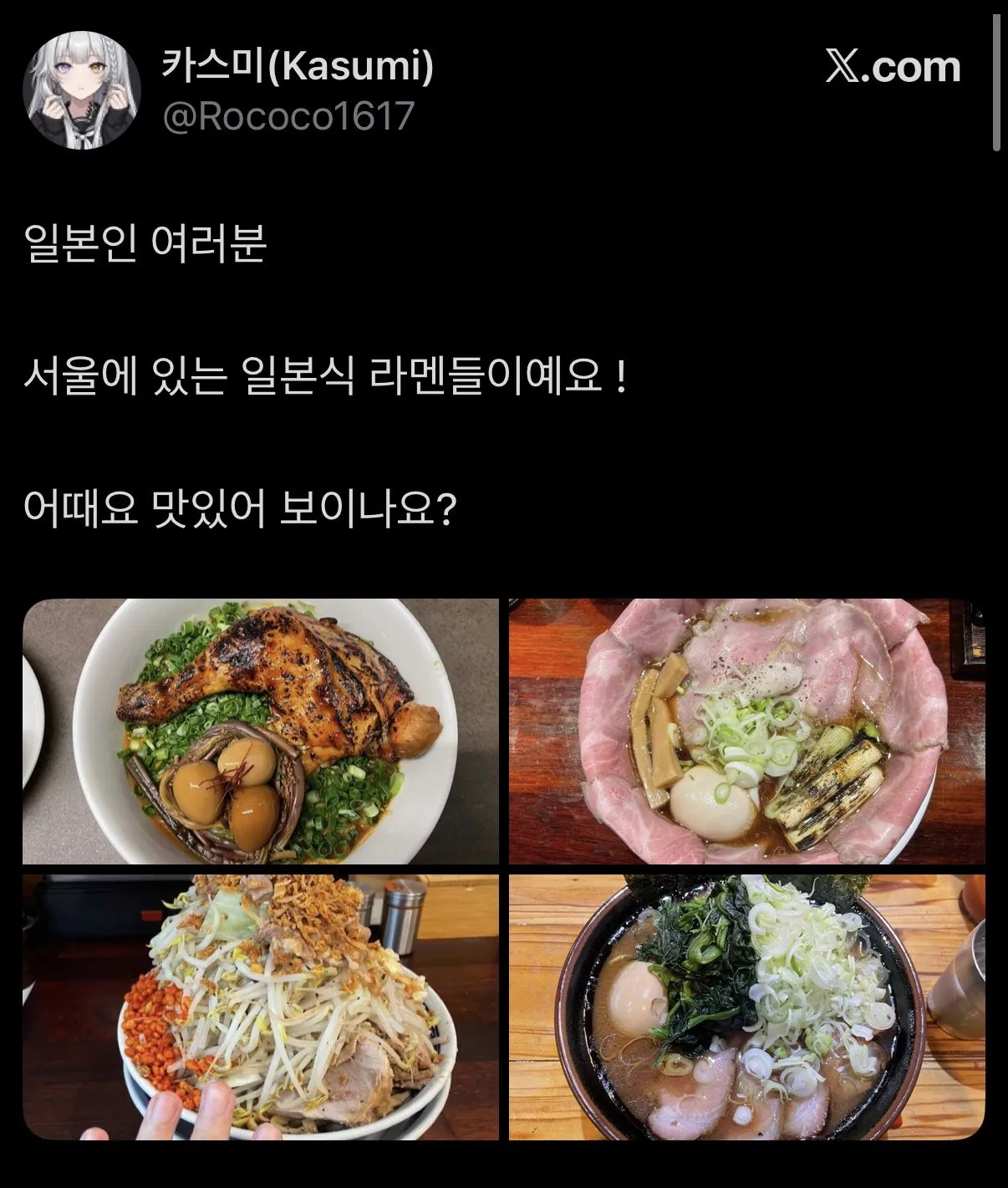 서울 유명 라멘 가게들이 요즘 차별화 전략으로 개성있는 라멘을 많이 내놓고 있다더라ㅋㅋ특히 합정과 망원 라인 식당들에서 이런 경향이 두드러진다고근데 일본인들이 봤을 땐 이게 푸짐하게 여러 재료를 넣는 한국 스타일이라고 생각한다는 거, 일본식 라면이 아니라고중국인들도 마라탕 열풍을 보면서 '맛있긴 하네 근데 왜 하필 이 요리야?'라고 생각한다더라, 사골육수에 온갖 재료 가득 넣어서 국밥처럼 푸짐하게 완성하는 거 보고 신기해한다고