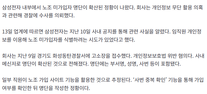 삼성 노조가 비가입 직원 명단 따로 만들었대