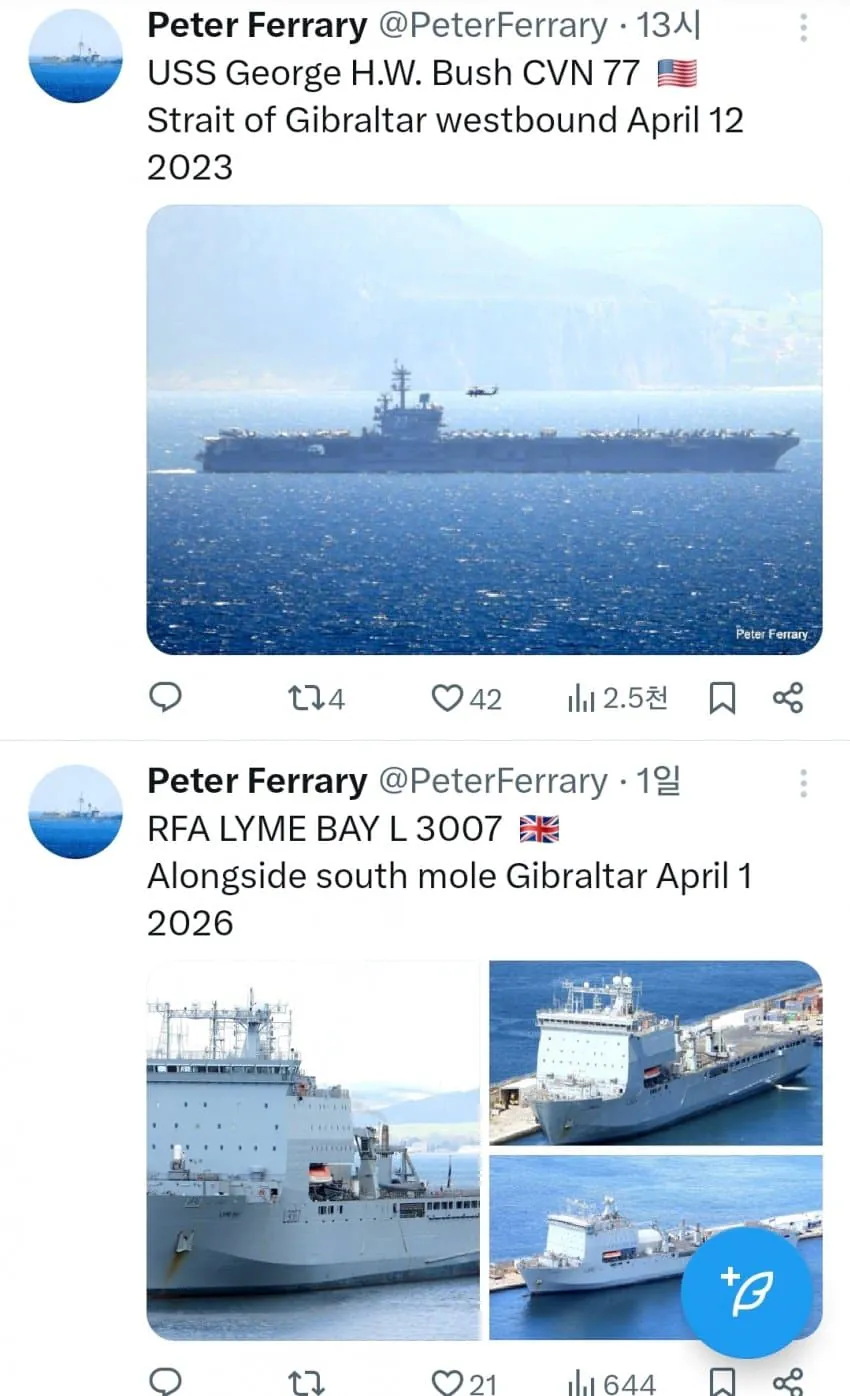 항공모함 지중해서 대기, 이란 홍해 봉쇄 움직임 감시 중