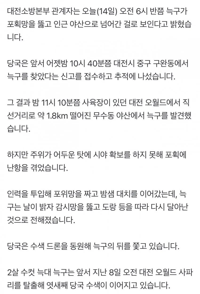 늑구 또 도망쳤대ㅋ 포위망도 뚫고