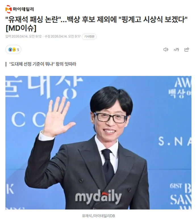 "유재석 패싱 논란"…백상 후보 제외에 "핑계고 시상식 보겠다"