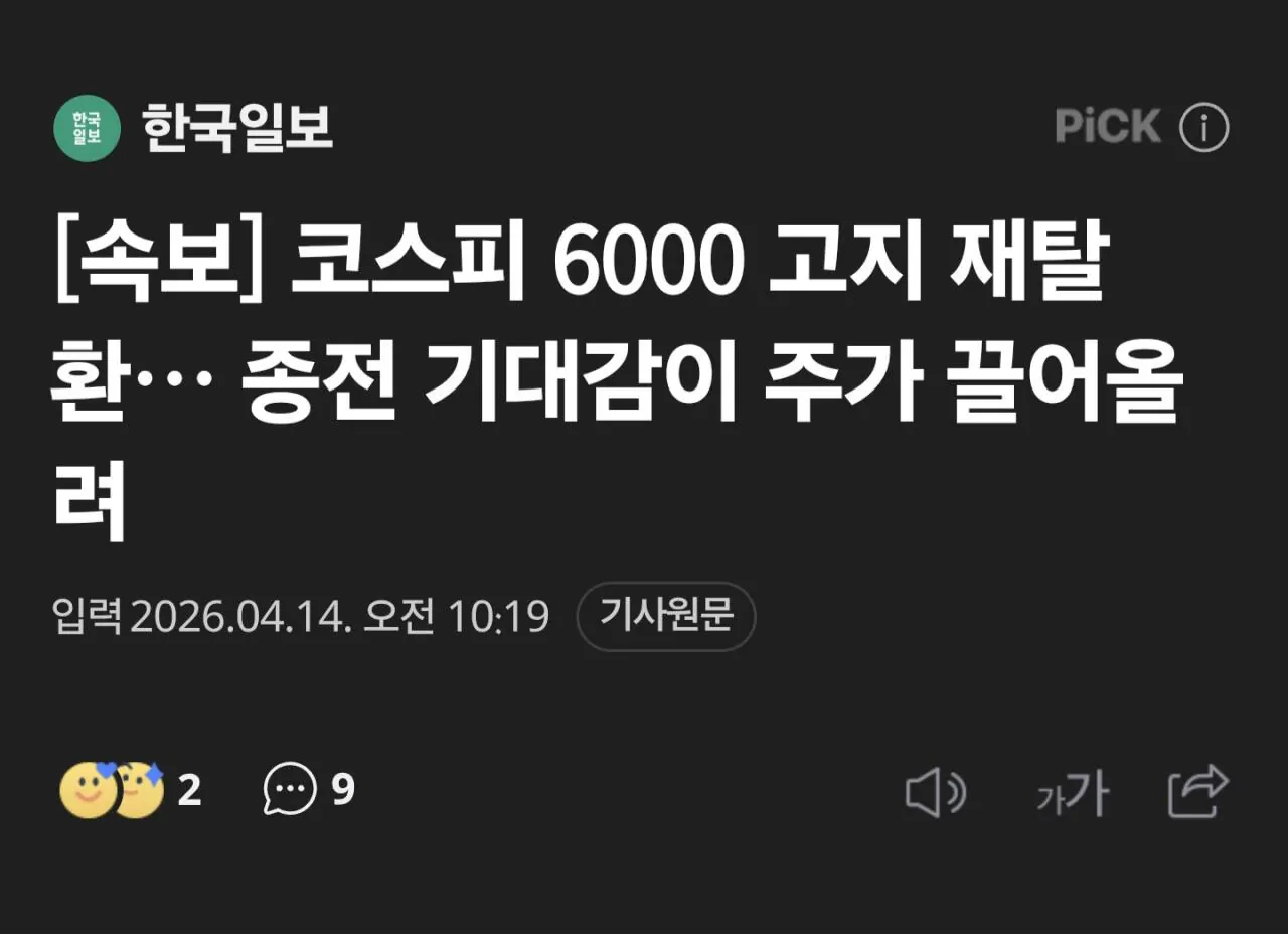 코스피가 결국 6000을 뚫고 나갔다고 하네. 이런 일이 정말 일어날 줄이야.