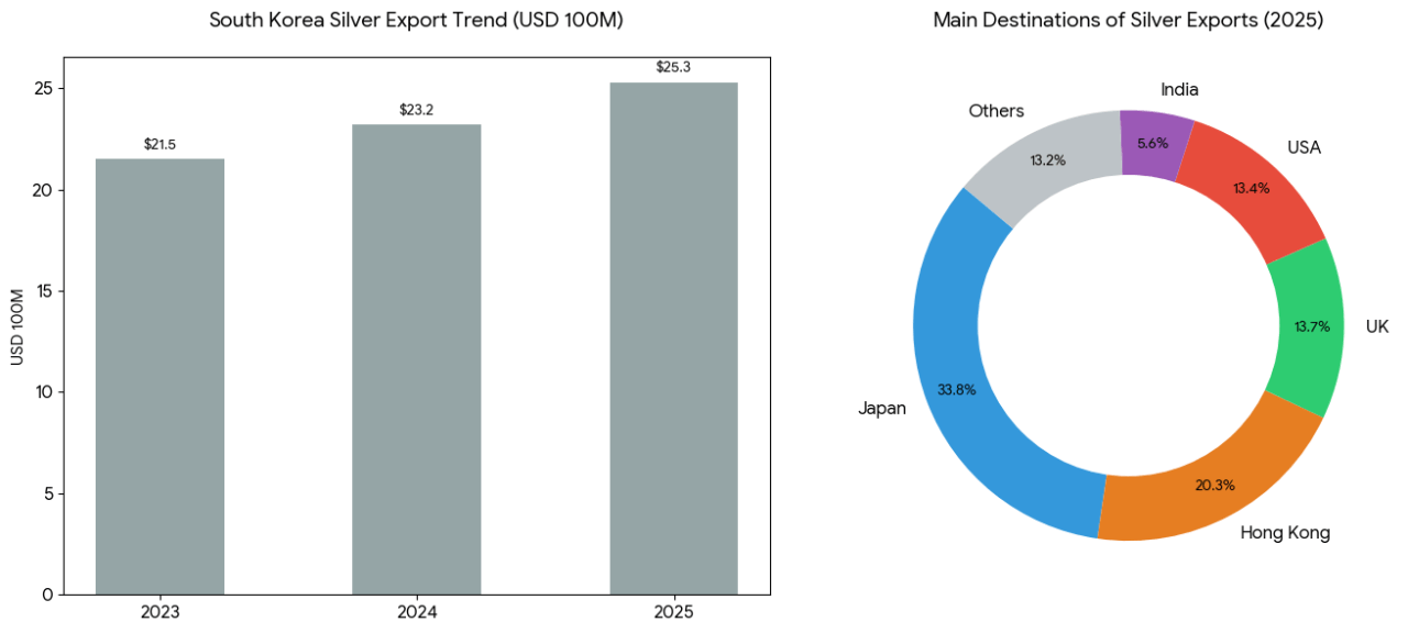 현재 한국의 은 수출액은 25.3억 달러에 이르고 있으며, 매년 3조원이 넘는 무역수지 흑자를 기록하고 있다. 광산 없이 얻은 수익이라는 점에서 한국 산업의 경쟁력을 잘 드러내는 사례이다.