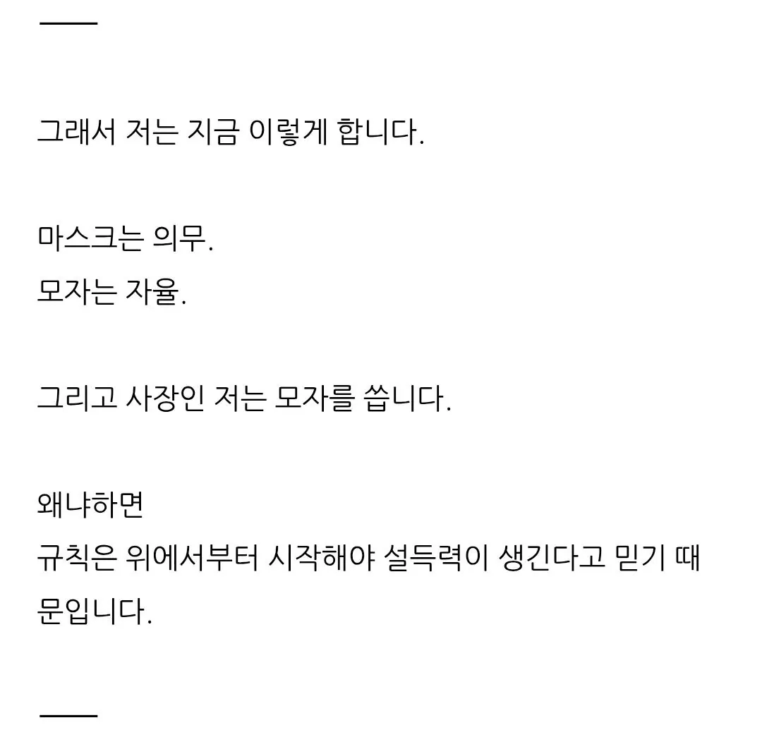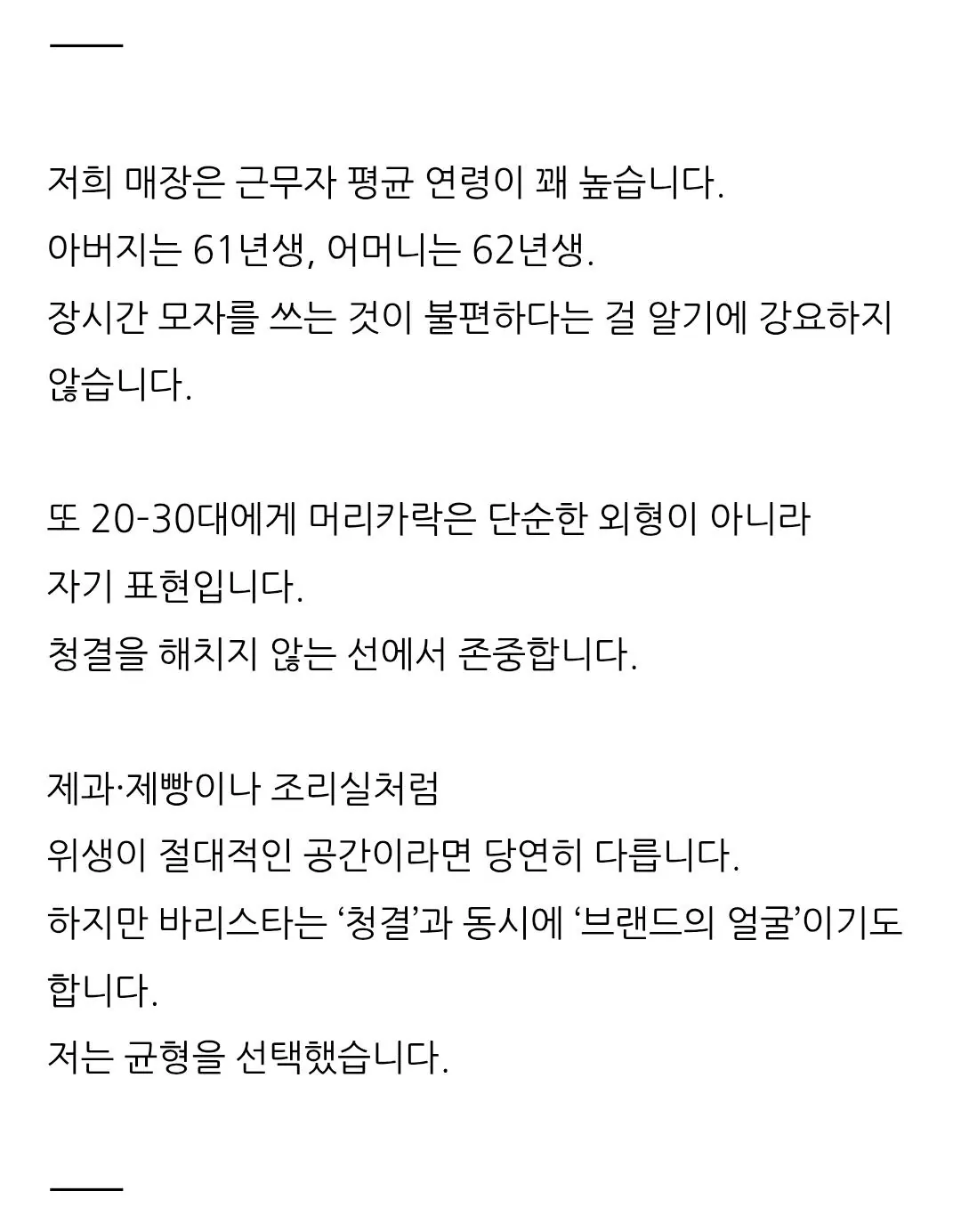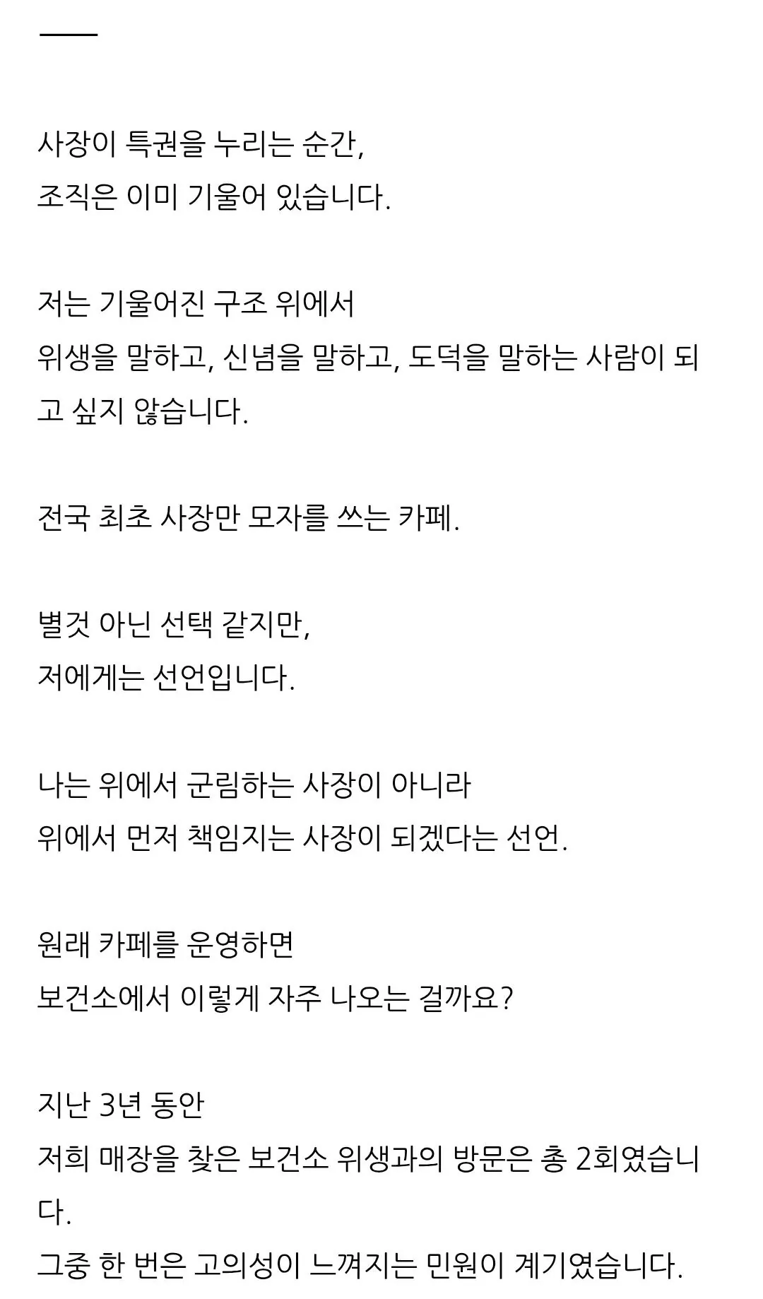 이 카페 특이한데 사장님한테만 모자 쓰는 게 필수라더라고요. 직원들은 안 쓰고 사장만 써야 한다는 게... 뭔가 독특한 마케팅 전략인가