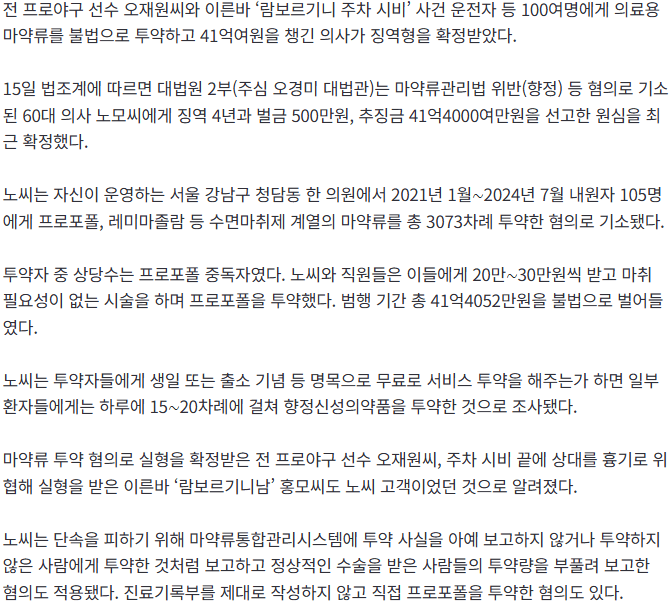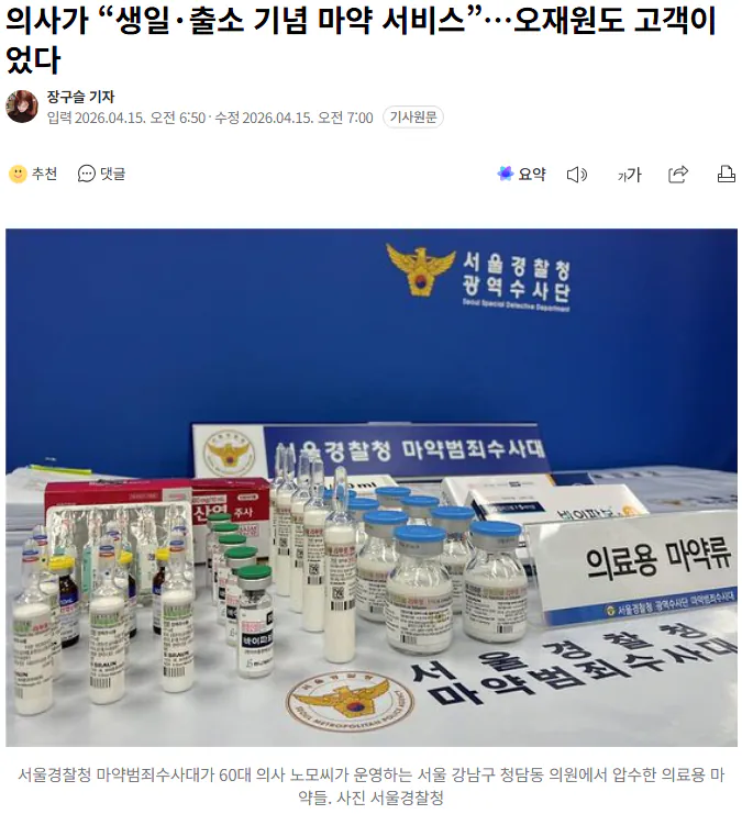 의학면허를 가진 인물이 생일파티나 출소 기념을 빌미로 마약을 배송해준 혐의가 드러났다. 불법 약물 유통에 연루된 고객 명단에 배우 오재원이 포함되어 있었던 것으로 확인됐다.