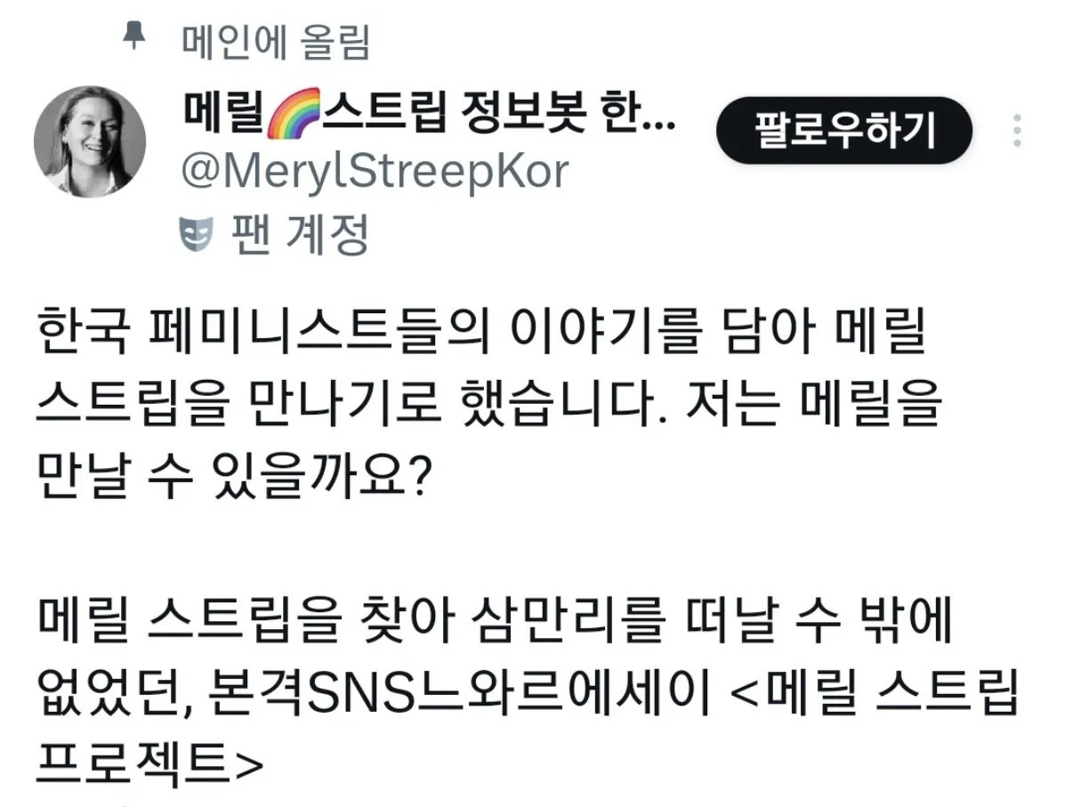메릴스트립의 방한 소식이 나오자 팬들이 들뜬다