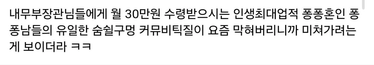 남초사이트에서 유행하던 내무부장관, 용돈 같은 낚시 밈들이 한순간에 사라짐 ㅋㅋ 퐁퐁남이 순기능을 하는 게 신기할 정도