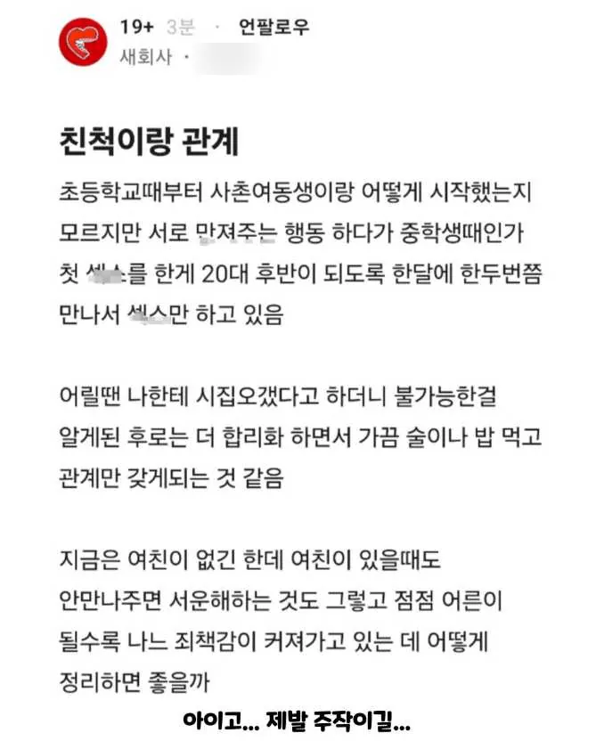 이래서 어른들이 사촌이랑 너무 가까이 지내지 못하게 하더라구요 ㄷ ㄷ