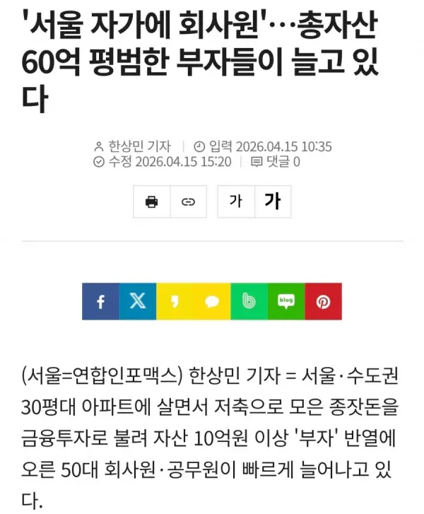 자산 60 억 정도면 평범한 부자라네